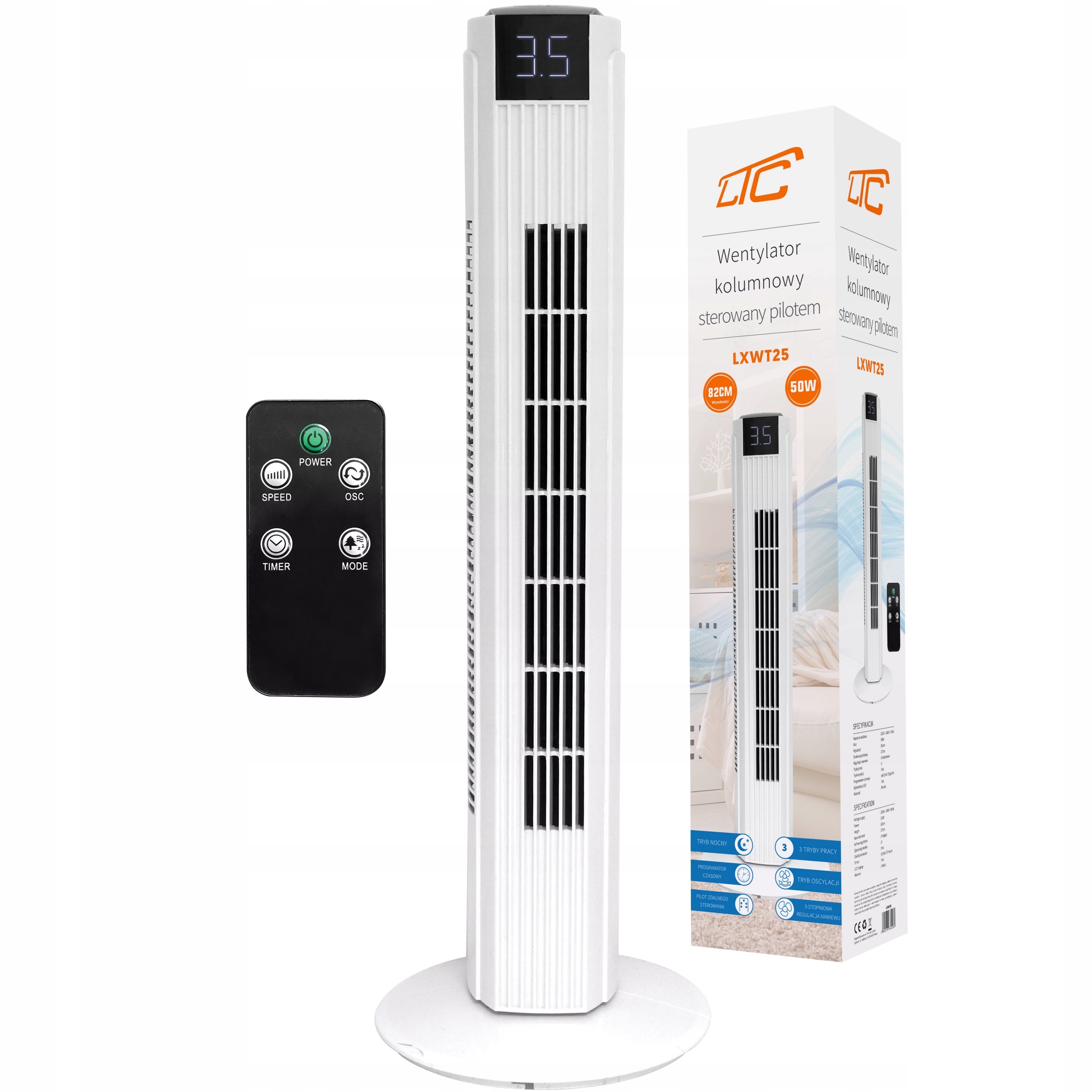 ✔ b> Использование управления с помощью пульта дистанционного управления в случае вентилятора этого столбца является важной функцией, которая позволяет пользователю удобно регулировать параметры устройства без необходимости физического подхода к нему. Эта функциональность увеличивает комфорт использования, устраняя необходимость встать с кресла или кровати, чтобы изменить настройки вентилятора. Благодаря этому адаптация прочности и направления воздушного потока становится чрезвычайно простым и интуитивно понятным, что приводит к еще большему удовлетворению использования продукта.