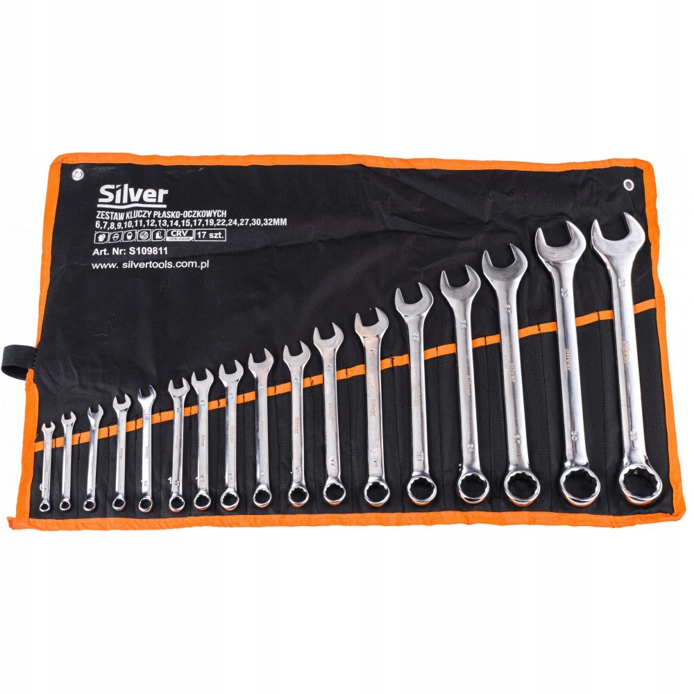 SILVER КІЛЬЧІ ВІДКРИТІ ГАЙКОВІ КЛЮЧІ 17 шт. 6-32 мм НАБІР ПЛАСТИНИ В ПЛОСКОМУ КОНСУЛІ