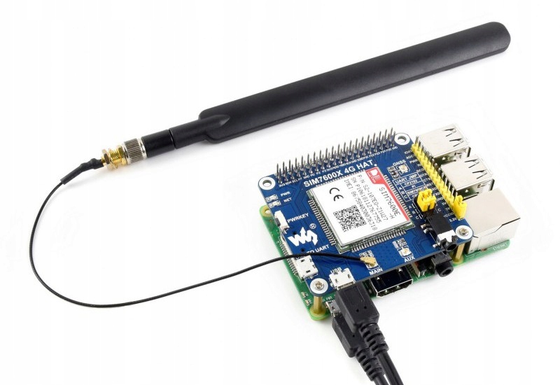 Оверлей для Raspberry Pi, позволяющий отправлять текстовые сообщения и создавать соединения в сети GSM. Также имеется GPS-модуль. Поддерживает LTE CAT4 до 150 Мбит/с. Он обменивается данными через последовательный интерфейс UART (RX, TX) посредством AT-команд.