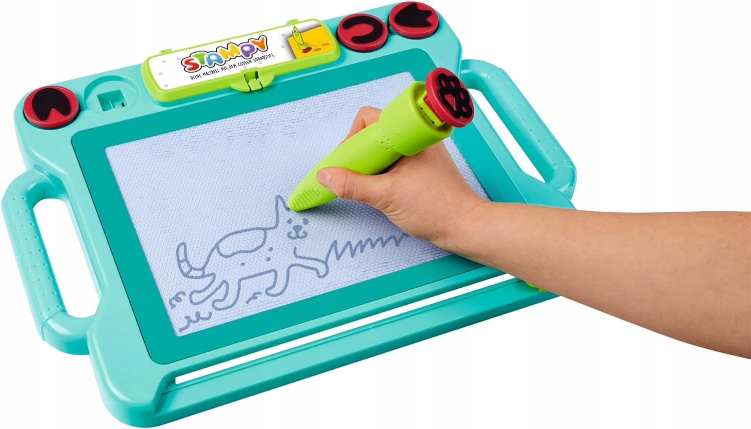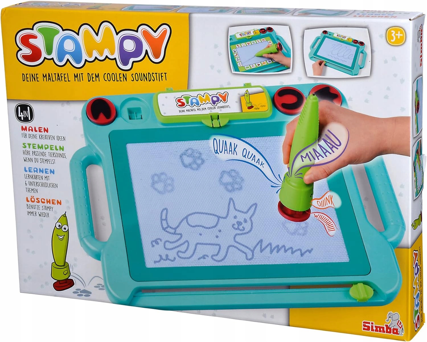 - Печать, рисовать табличку с хорошей звуковой ручкой - Stampy не является обычной табличкой для рисования и письма: после штамповки 4 магических лап животных (утка, кошка, лошадь, свинья) звучит правильный звук животного