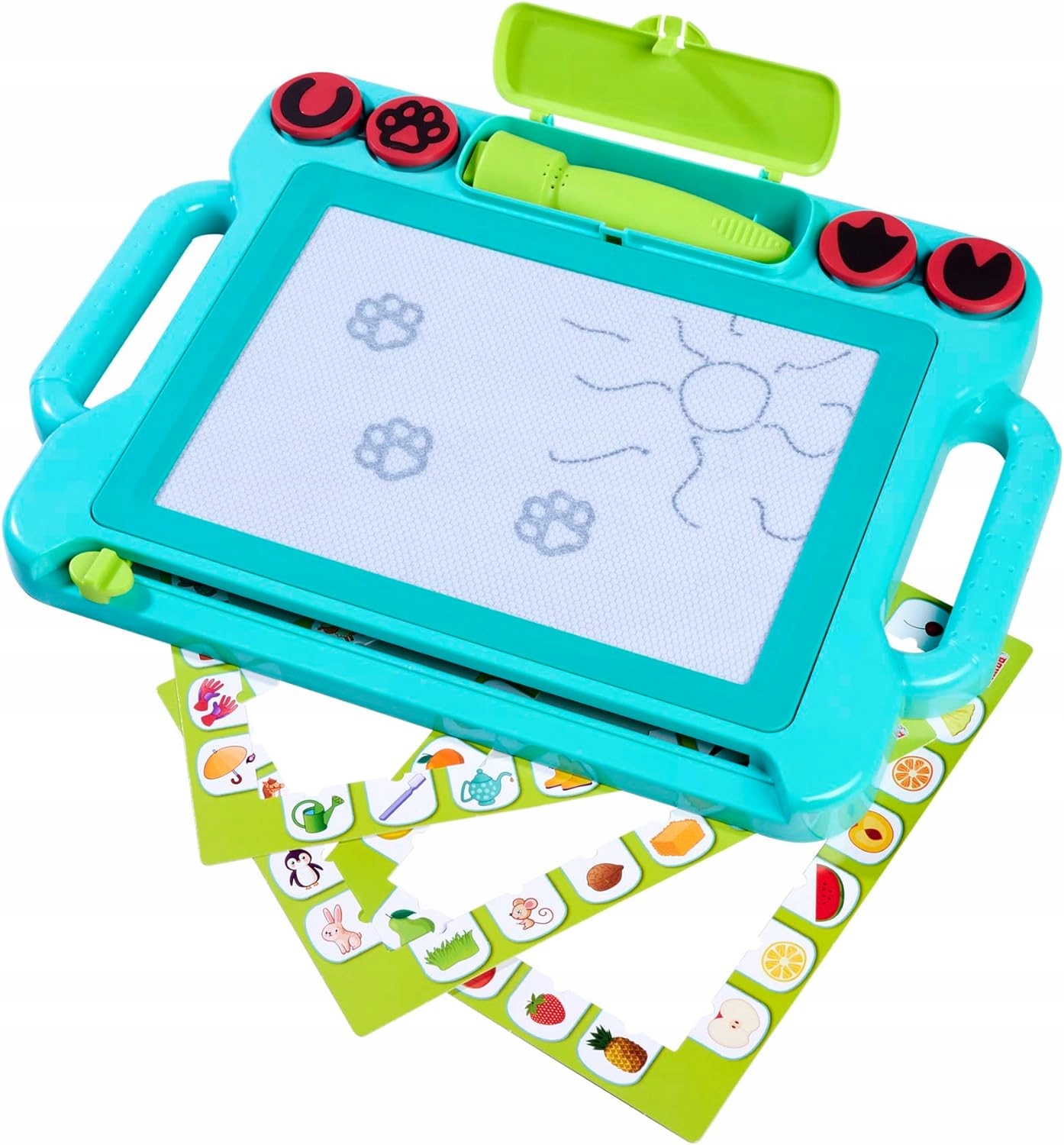 - Волшебная табличка для рисования 4 в 1 - на большой поверхности для рисования (25x17 см) дети из 3 лет могут рисовать, рисовать и писать, но также штамп, учиться в игре, и, конечно, все снова стирается