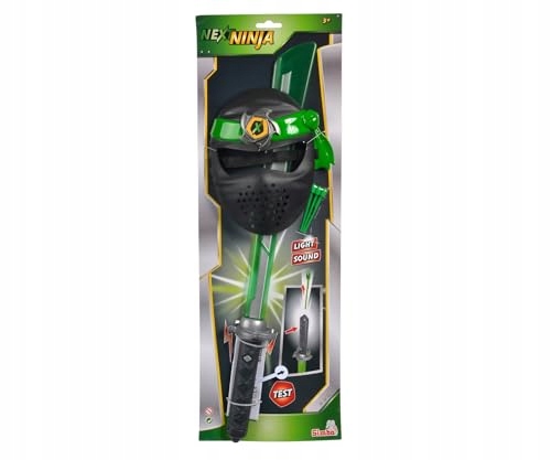 С набором, состоящим из меча Next Ninja и маски, дети смогут почувствовать себя настоящим ниндзя. Прибл. Большой меч длиной 60 см имеет подсветку и функцию стрельбы. Если нажать кнопку на рукоятке, стрелы вылетают из рукоятки. Маска крепится к голове текстильной тесьмой. Меч и маска Next Ninja от Simba Toys подходят для детей от 3 лет и старше.