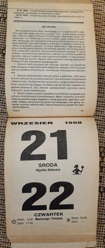 Семейный календарь на стены на 1988 год - карты пикапов - сувенир PRL