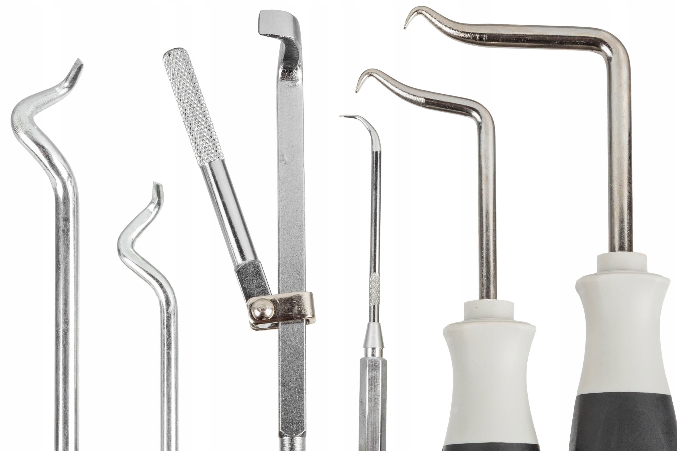 ✔ 6 специализированных крючков: Каждый из инструментов имеет различную форму и длину, что позволяет им соответствовать определенному типу прокладки, измарбальной или сойтельной - как при демонтаже, так и при манипулировании элементов. и уменьшает усталость во время работы.