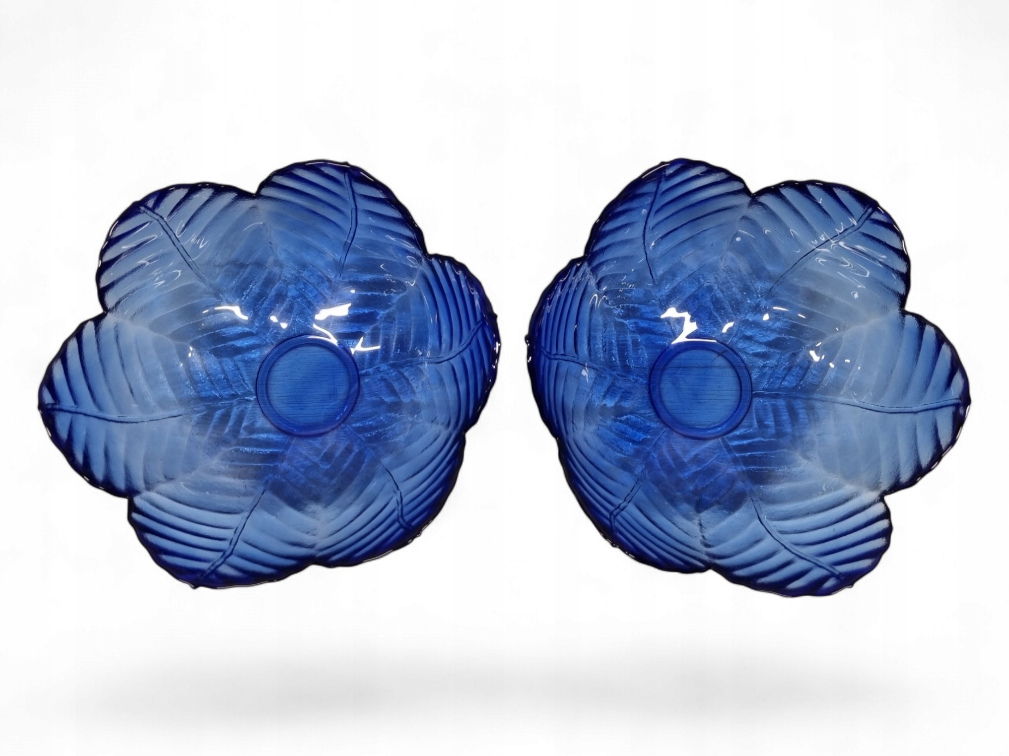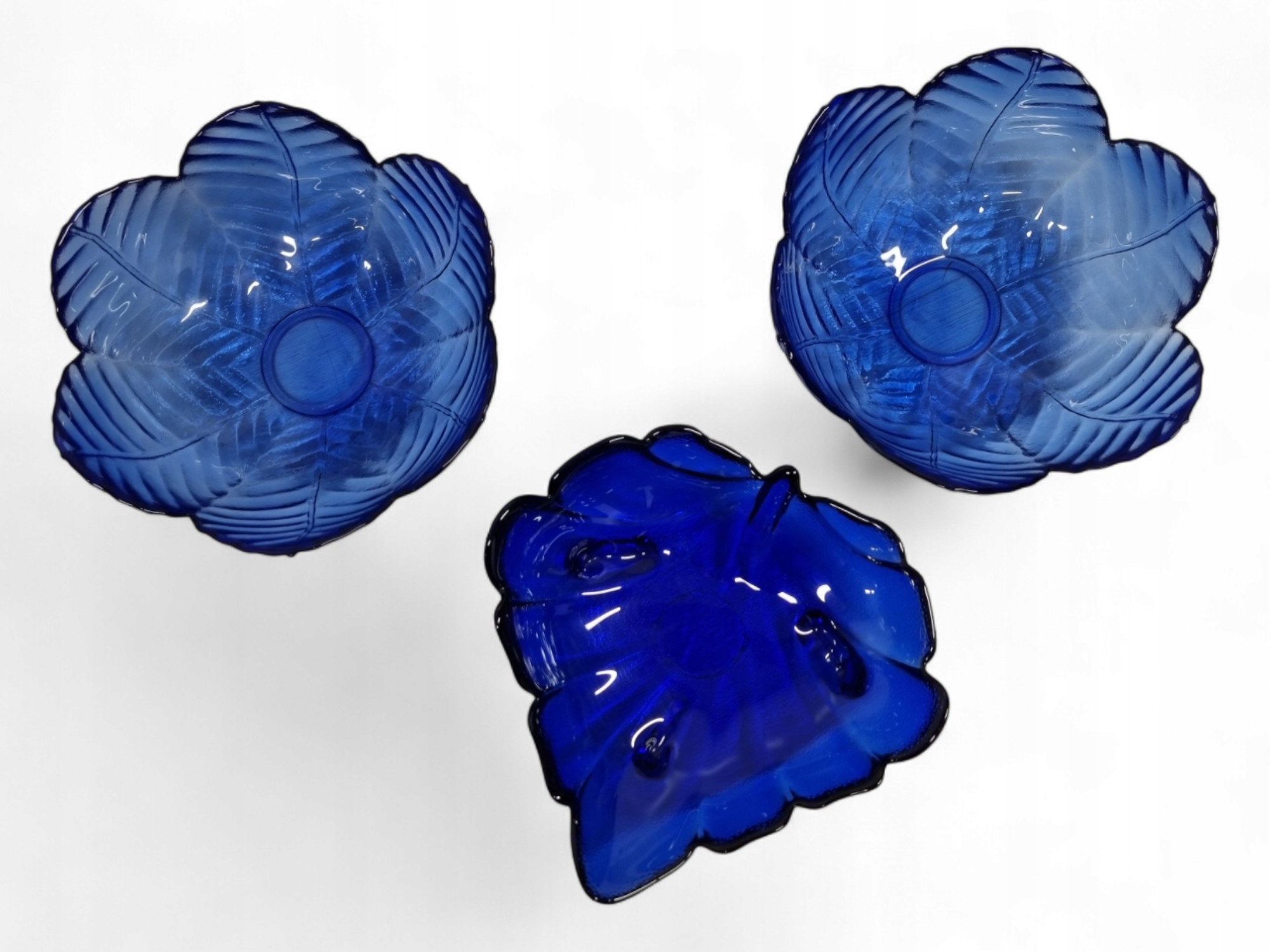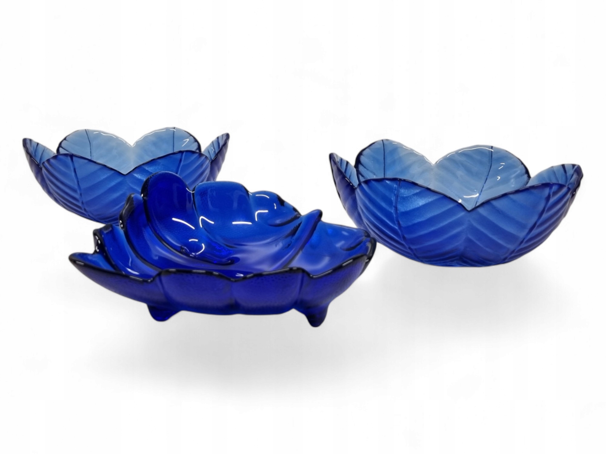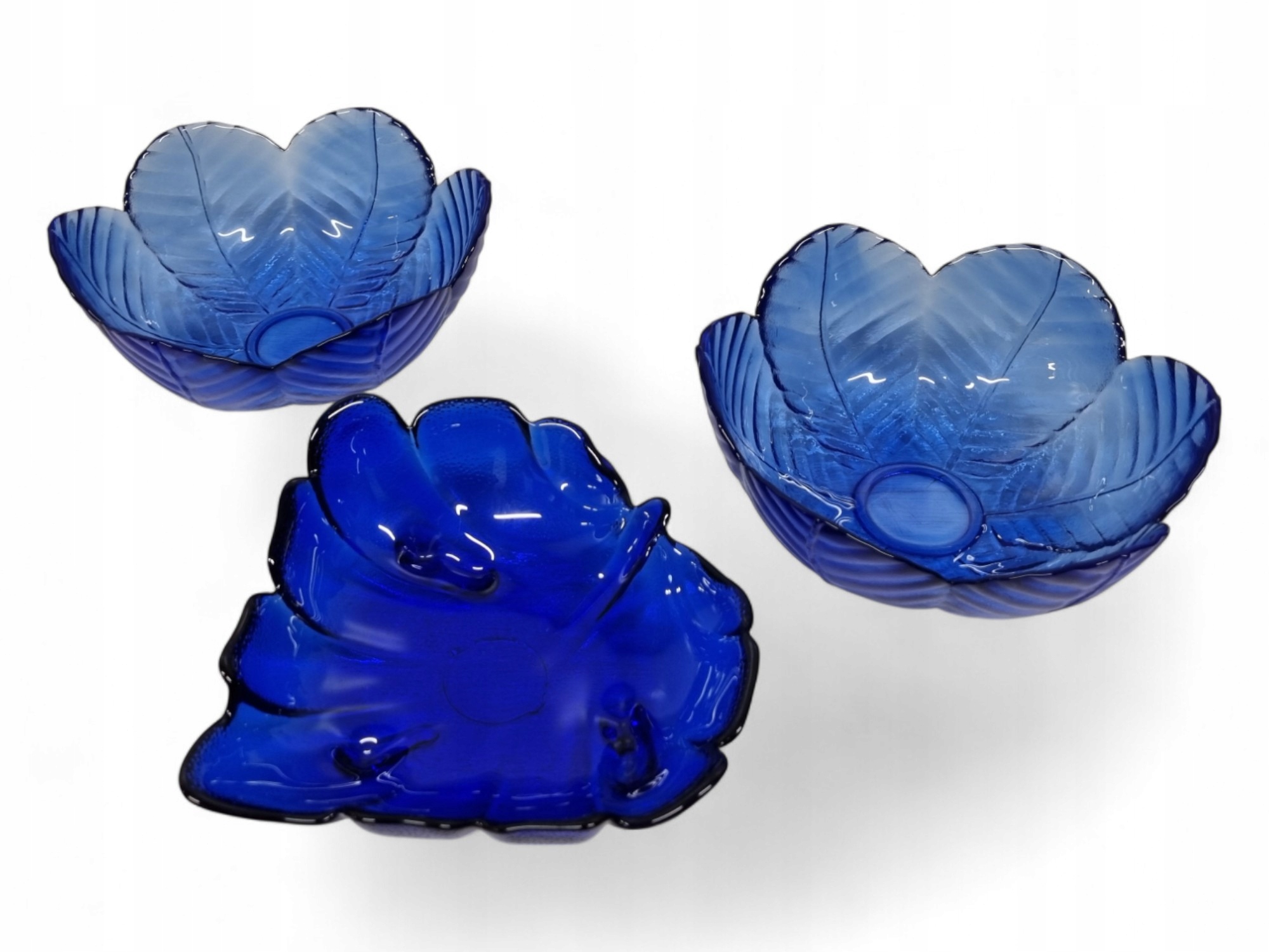Голубые стеклянные миски и уникальное блюдо в форме синего листа