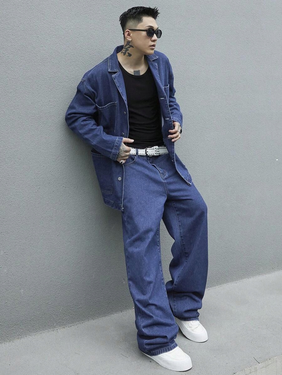 СИНИЙ ДЖИНСОВЫЙ КОМПЛЕКТ КУРТКА КАРМАНЫ БРЮКИ ДЛИННЫЕ НОГИ SHEIN XL