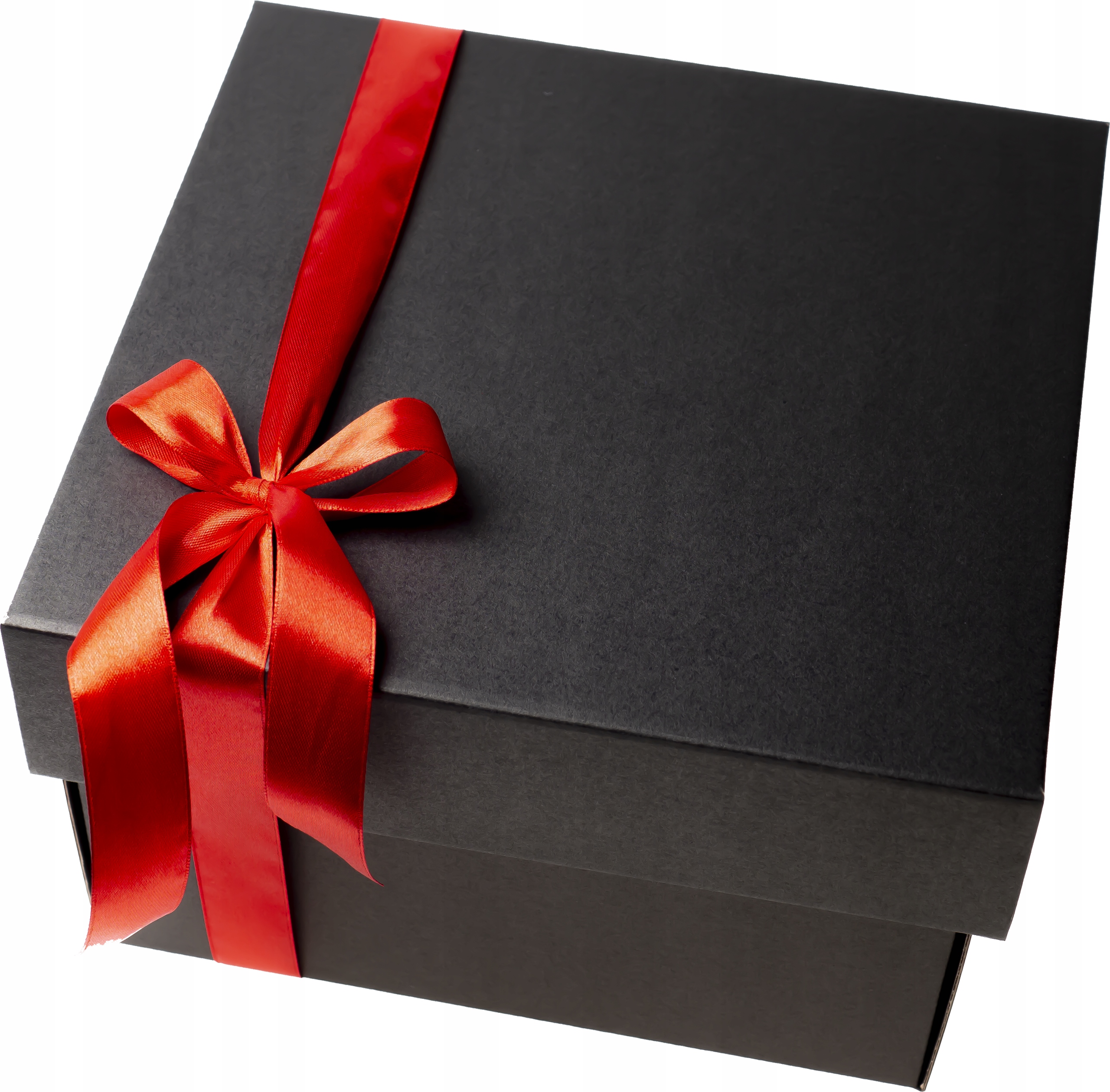 - ЧЕРНАЯ ПОДАРОЧНАЯ КОРОБКА С ЛЕНТОЙ сплошная коробка с крышкой, в которой можно разместить дополнительные предметы