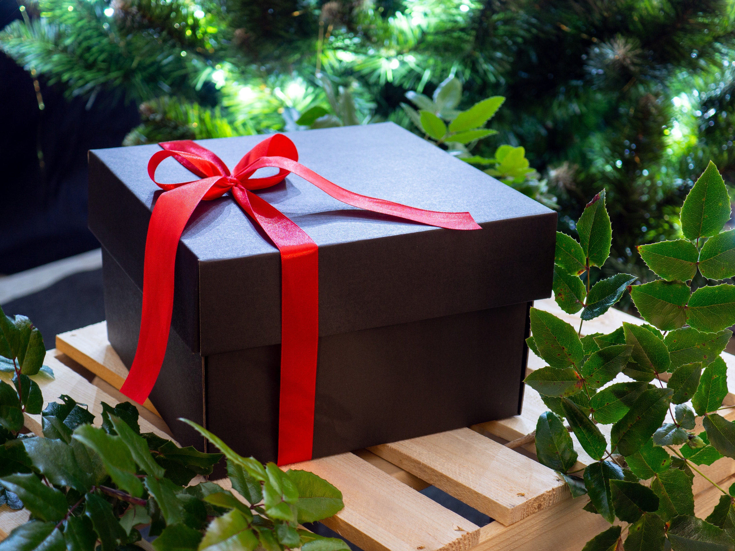 ЧЕРНАЯ ПОДАРОЧНАЯ КОРОБКА С ЛЕНТОЙ