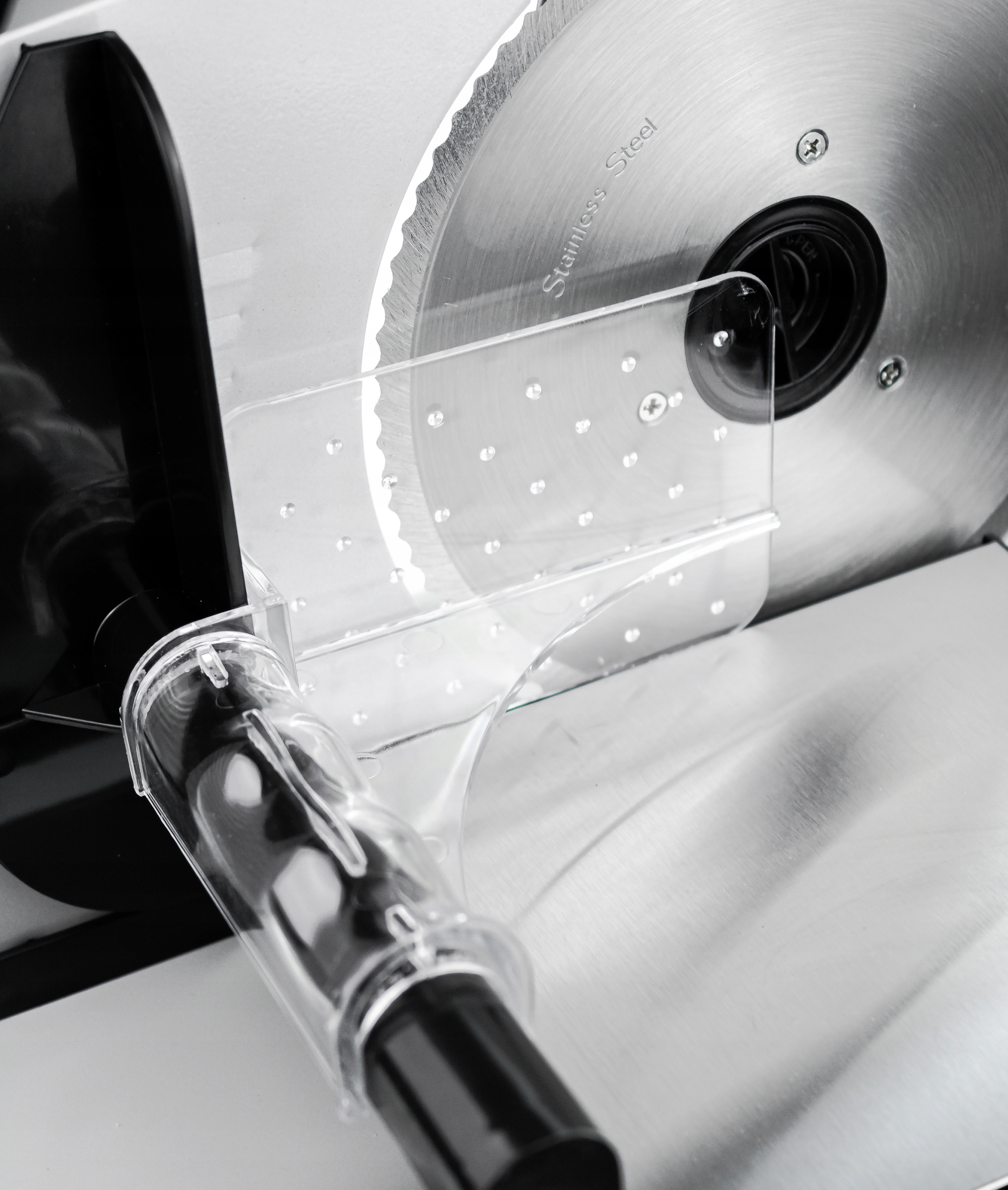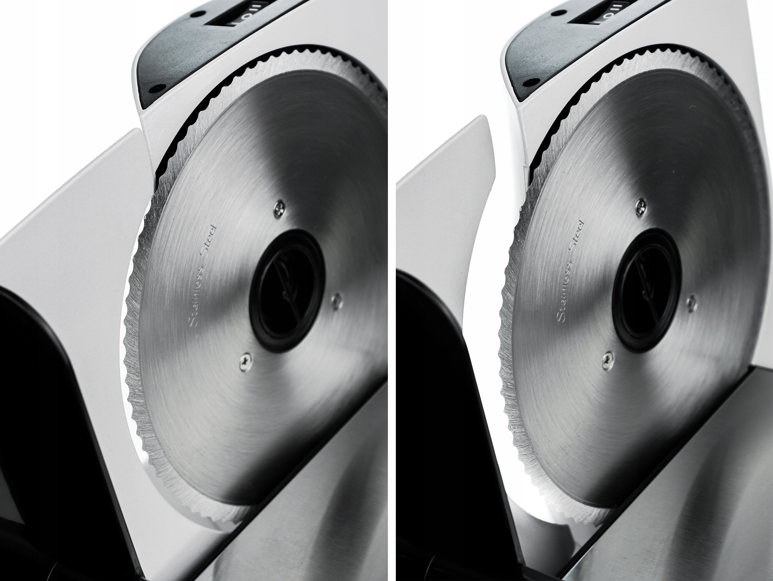 Высококачественное лезвие из нержавеющей стали позволяет нарезать мясо тонкими ломтиками, а также отрезать цельный ломтик деревенского хлеба. Толщину нарезки можно свободно регулировать, что упрощается благодаря четкому индикатору текущей настройки.