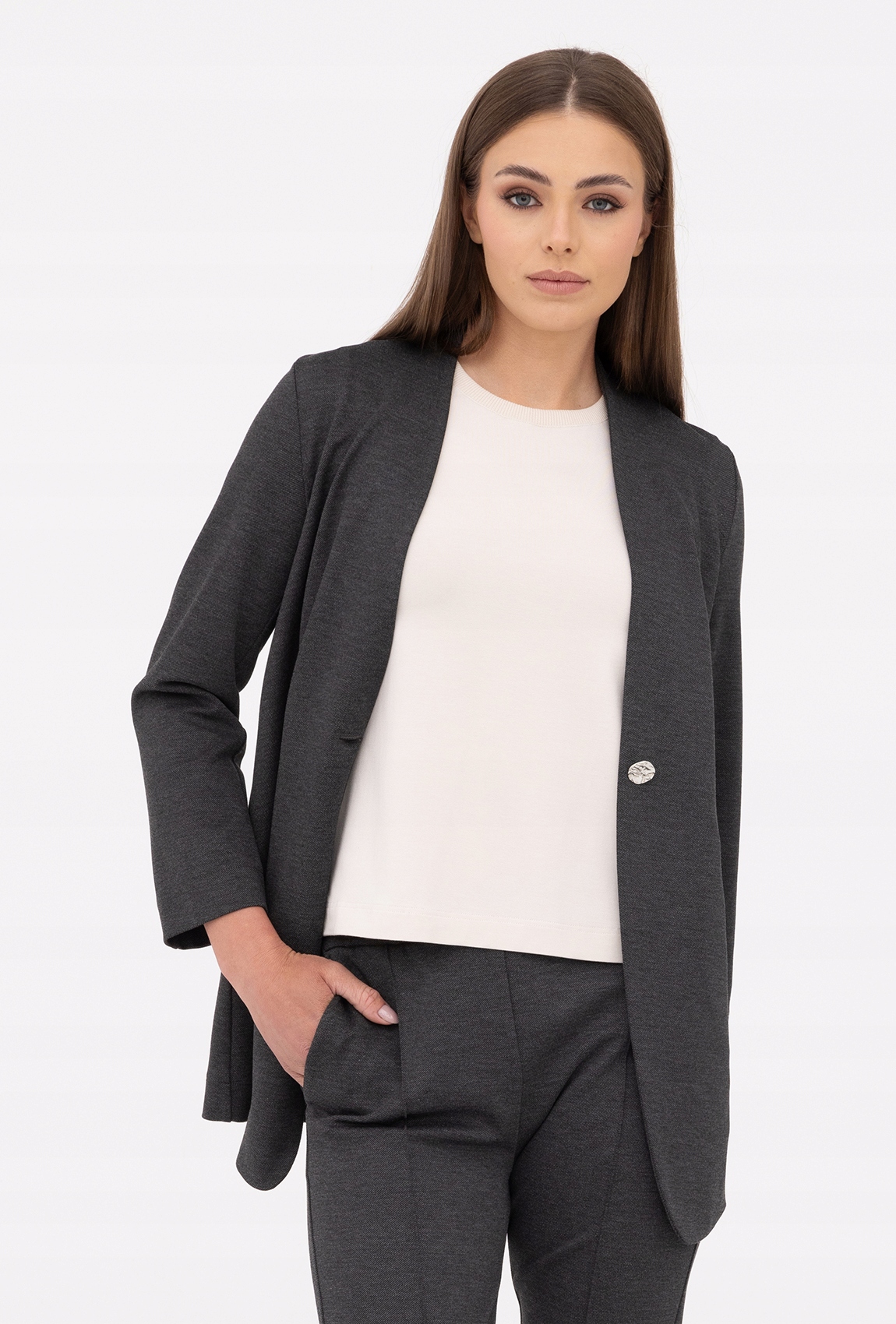 Большим преимуществом женских однобортных пиджаков является их универсальность и повседневный характер. Куртка Gianna застегивается всего на одну пуговицу – ее не придется расстегивать, чтобы она прекрасно сидела по фигуре, даже когда вы сидите. Она расположена под грудью, над бедрами и животом. Если вам нужно немного больше свободы – нет ничего проще: куртка Gianna отлично смотрится, если носить ее без пуговицы. Дополнительным преимуществом такого кроя является линия талии и то, что куртка доходит немного ниже бедра, а такая длина придает фигуре выгодные пропорции. Товар доступен в онлайн-магазине Gatta в двух цветах и нескольких размерах на выбор – если не знаете, какой из них подойдет лучше, взгляните на таблицу размеров.