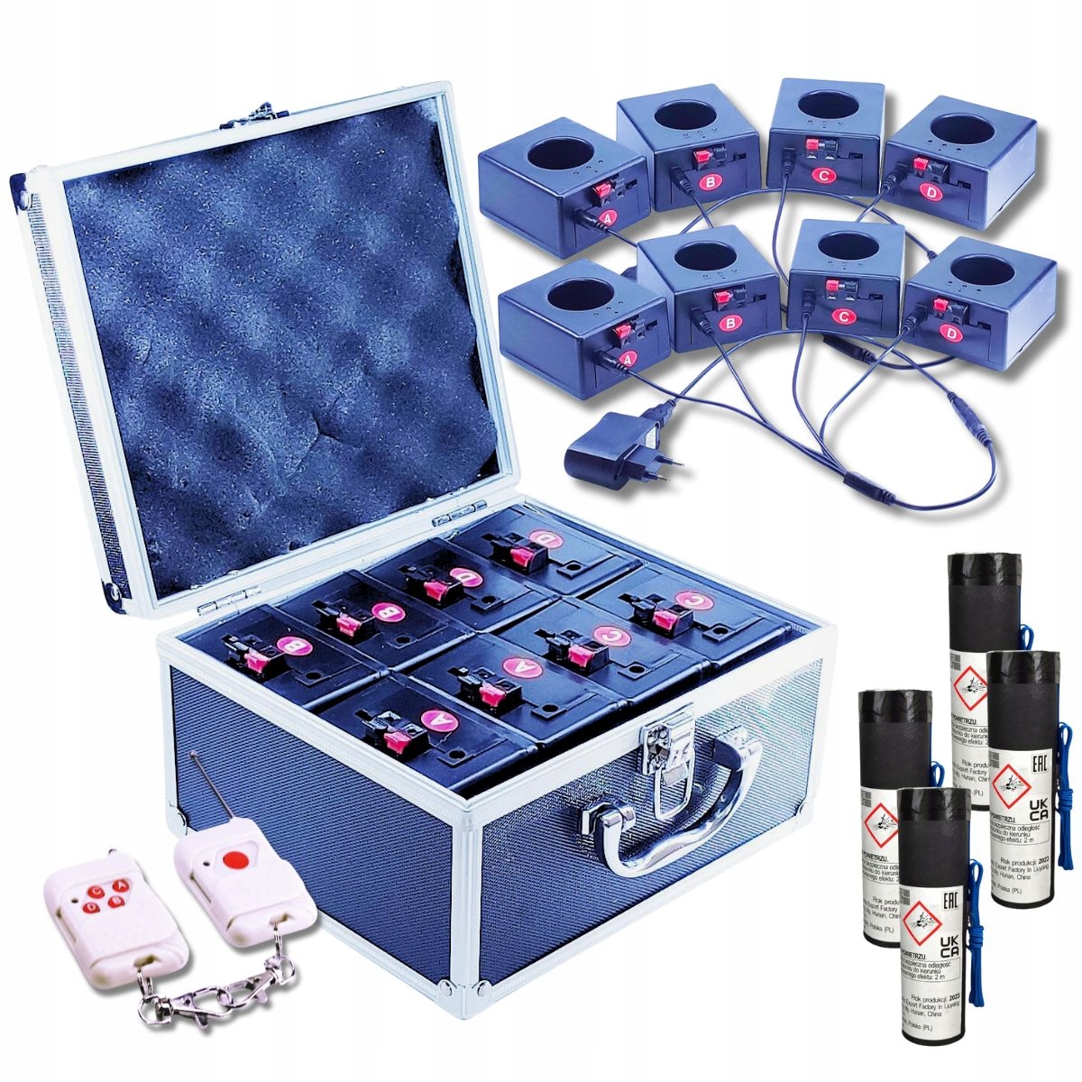 В предложение входит система, т.е. 8 станций, каждая из которых активируется дистанционно, и 2 пульта дистанционного управления, работающих независимо друг от друга, вместе с элегантным чемоданом.