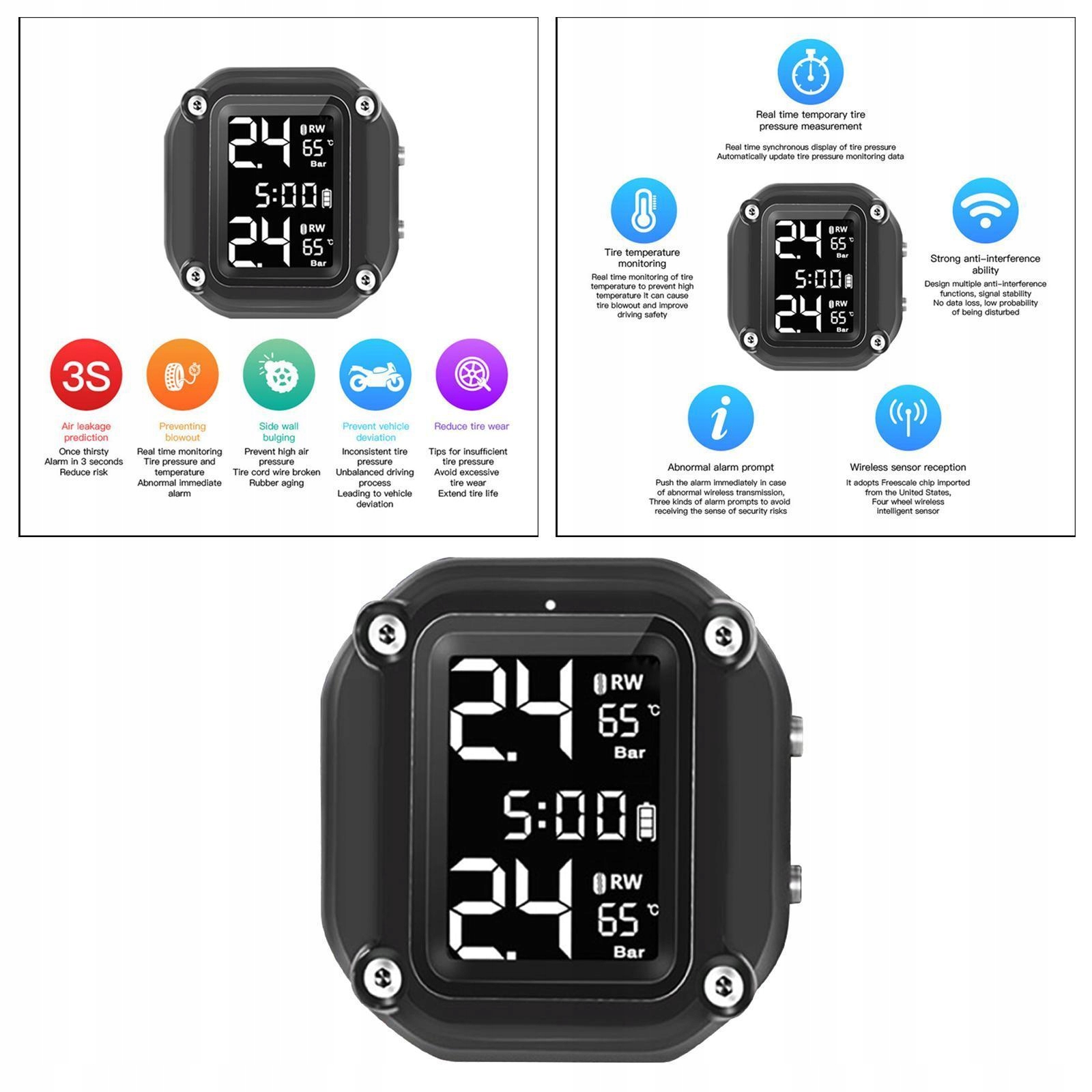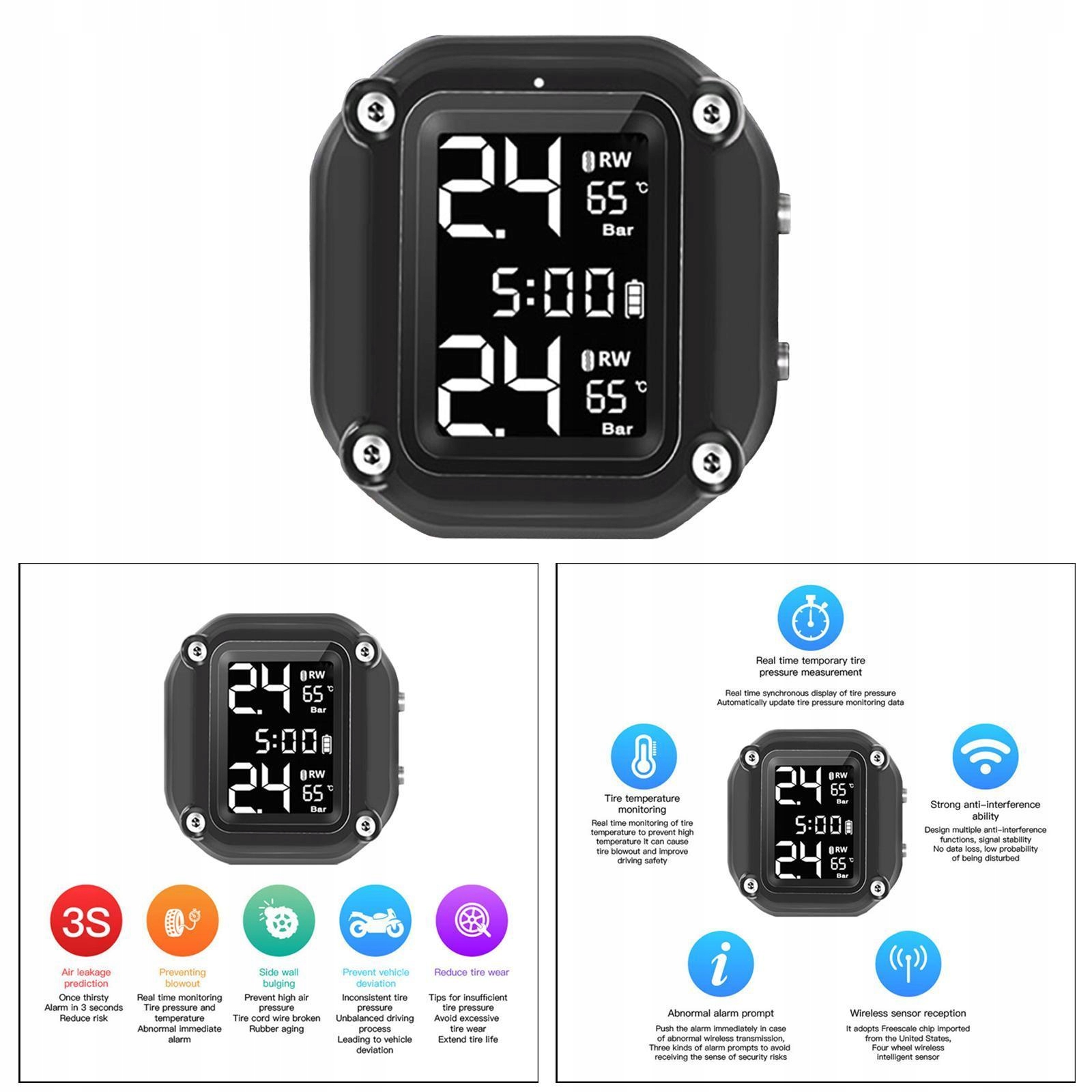 Система контроля давления на мотоцикле в шинах TPMS с визуальной и звуковой функцией