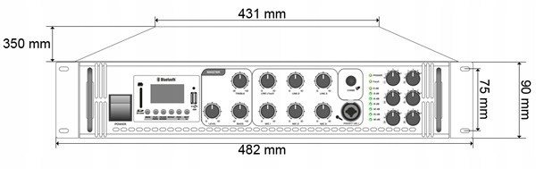 Входы: 3 X Mic (Mic с приоритетной функцией), 3 x Aux, встроенный -in mp3 -плеер - данные из внешней памяти USB или SD -карта . Bluetooth Connection для устройств, оснащенных Bluetooth, например, мобильные телефоны. Уровень выходного сигнала главного объема, коррекция соединения низких и высоких тонов.