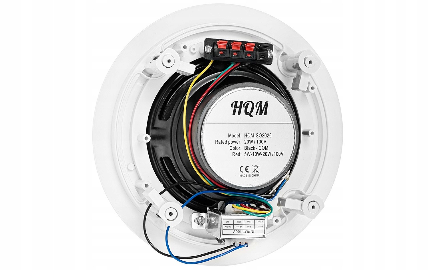 Ниже приведен набор радио звучания 100 В с семью потолочными динамиками из известного польского бренда hqm в черном или белом и усилителе MP3.