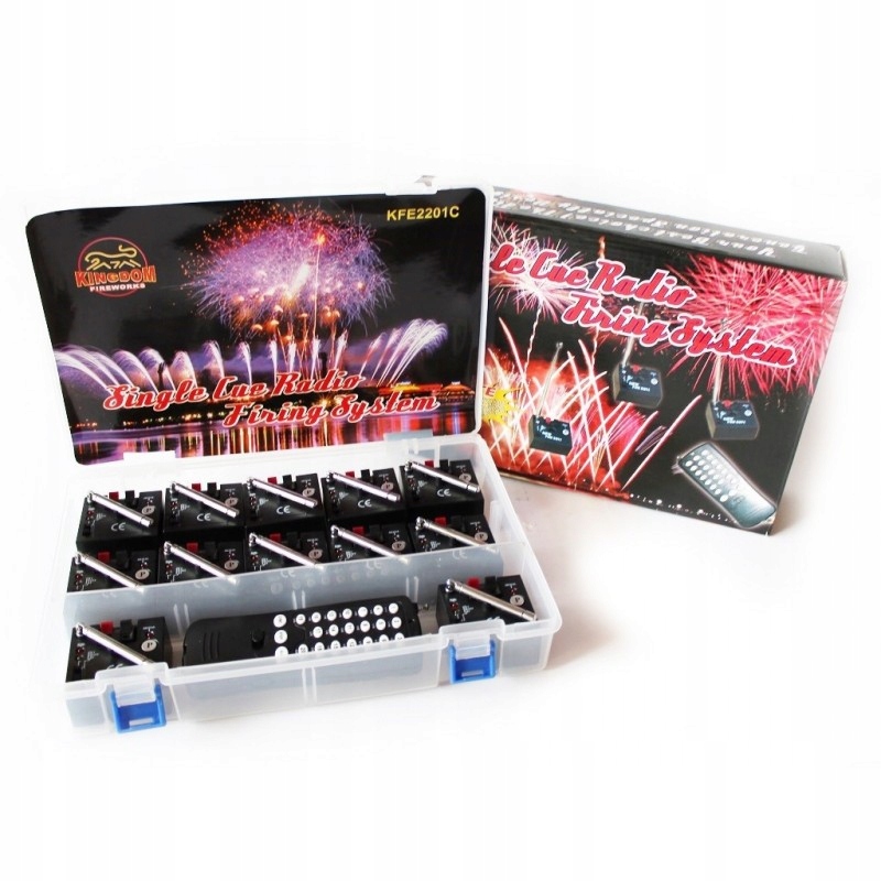 Профессиональный и в то же время просты в использовании и не требуя специализированных навыков, известной на пиротехническом рынке из Королевства. В основной версии он допускает 10 зарядов с расстояния до 750 метров (данные производителя). Передатчик может быть запрограммирован до 80 приемников (4 канала из 20 приемников) Королевство 1. На одну кнопку на передатчике вы можете назначить несколько приемников королевства 1, например, На канале 4 к кнопке 1, 2 приемники будут запрограммированы, будут запрограммированы 2 приемника, 2 приемника, 1 приемник будет запрограммирован на кнопку 3 и т. Д. AAA) + батарея в передатчике