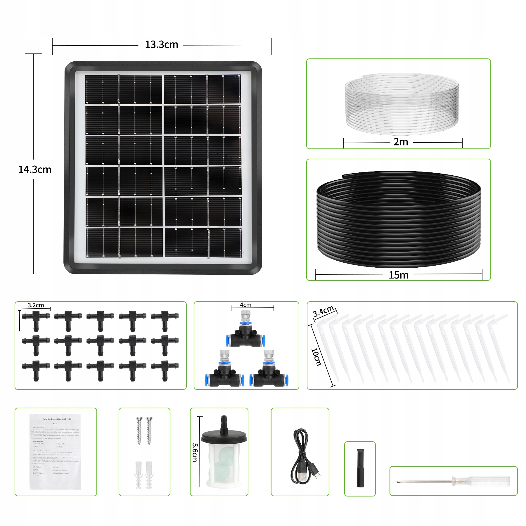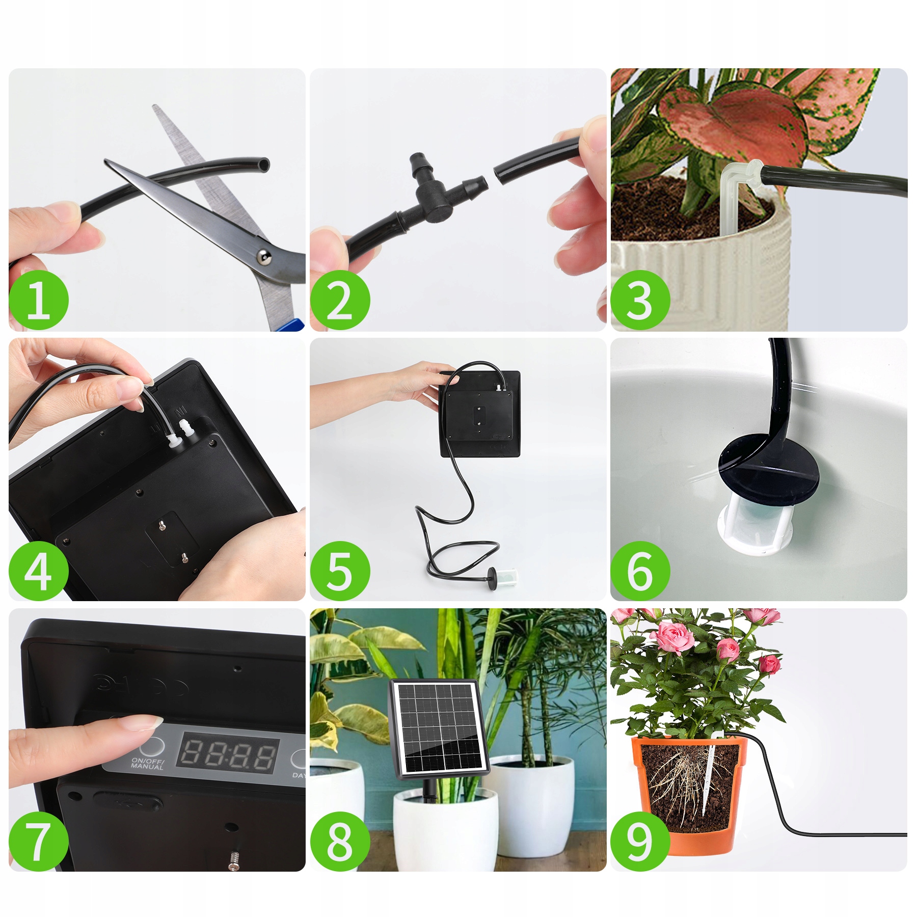 Наша новая ирригационная система, работающая на солнечной энергии. Специально разработано для полива во время праздников, напряженных графиков и меняющихся погодных условий. Дефицит воды и низкая мощность. Полем Капля ирригации не следует использовать одновременно. При использовании душа правильно используйте серую жесткую змею