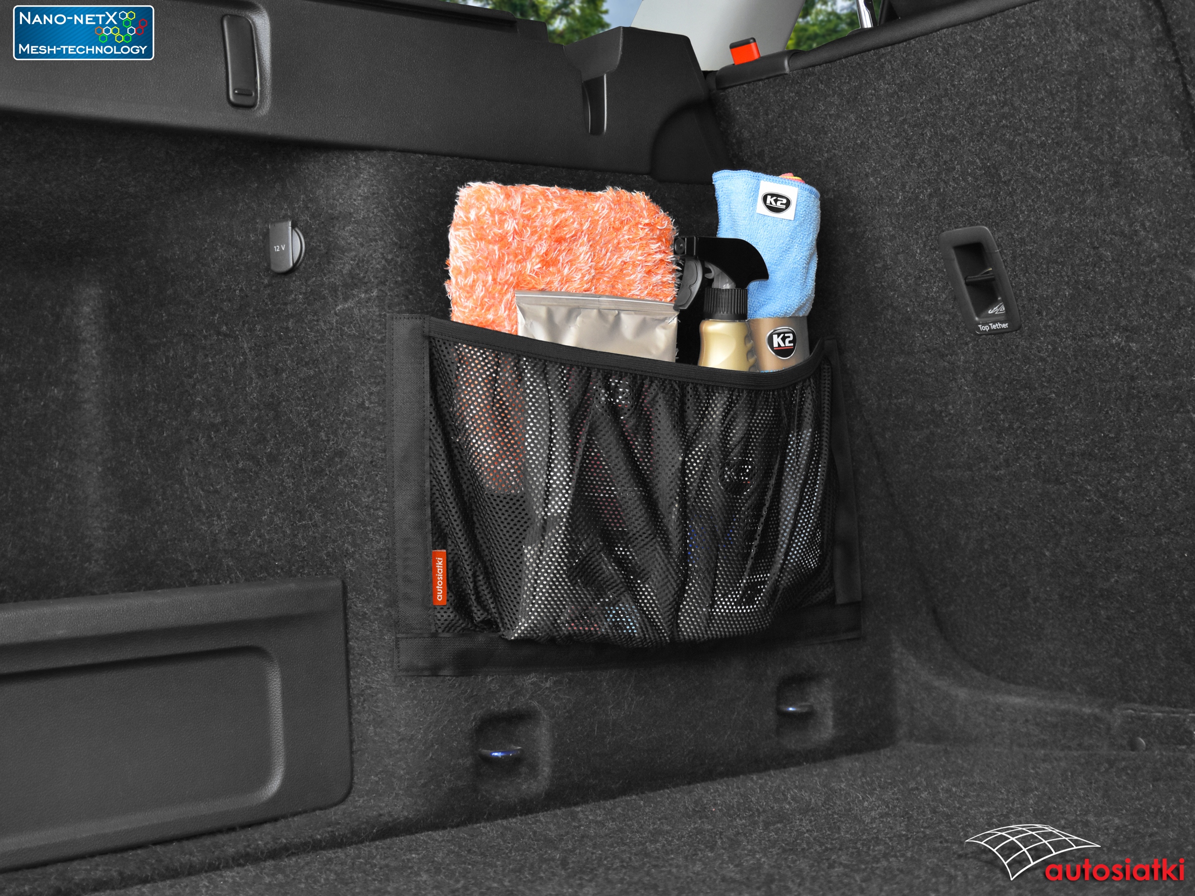 Это прочная сетка Nano-NetX, отделанная лентой-липучкой снизу и по бокам. Прорезиненный верх для защиты аксессуаров от перемещения. Используемый материал Mesh-Technology защищает даже небольшие предметы от выпадения. Карман крепится на коврик в багажнике или салоне автомобиля.