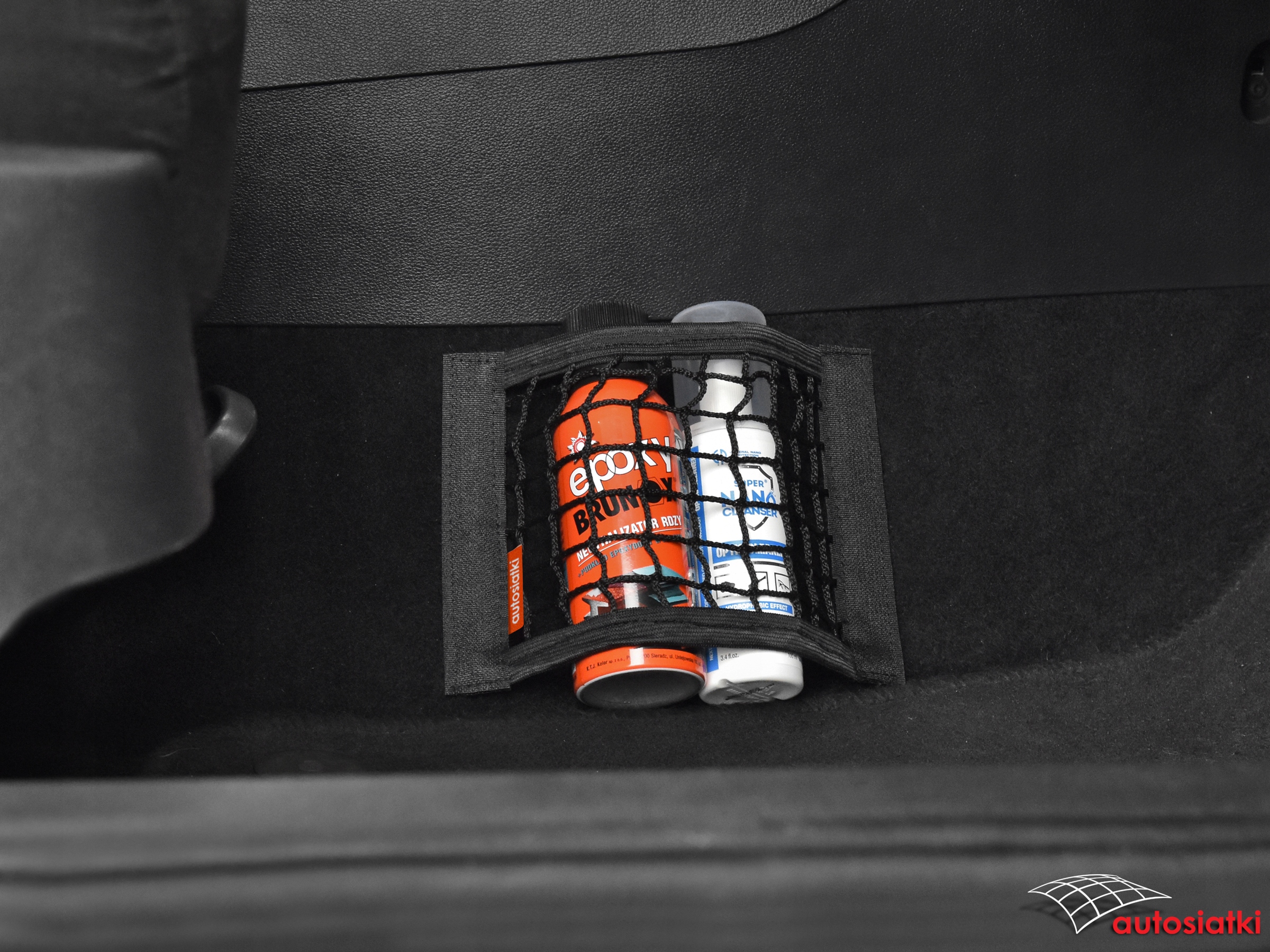 Это прочная сетка с лентой-липучкой по бокам. Отделка гибкой резиной сверху и снизу, что позволяет подогнать сетку под транспортируемые предметы. Ограждение крепится к ковру в багажнике или салоне автомобиля.