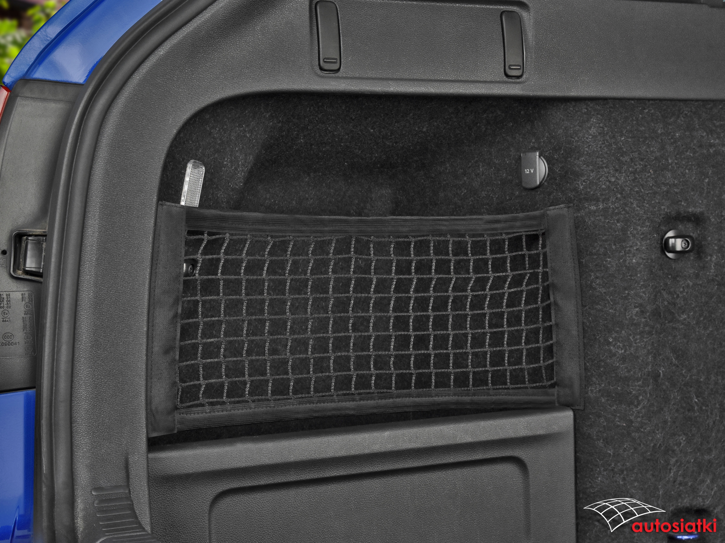Это прочная сетка с лентой-липучкой по бокам. Отделка гибкой резиной сверху и снизу, что позволяет подогнать сетку под транспортируемые предметы. Ограждение крепится к ковру в багажнике или салоне автомобиля.