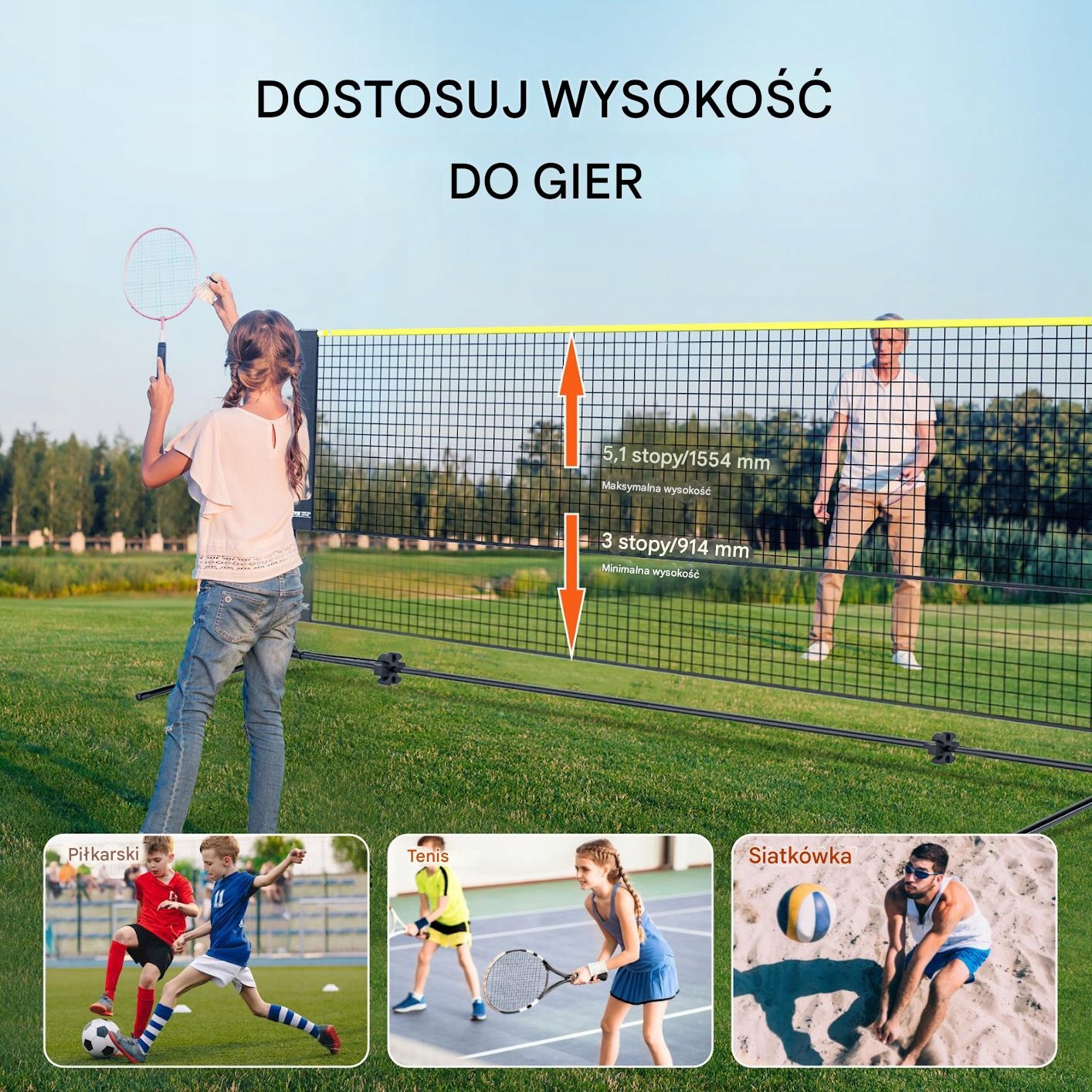 Создайте свою собственную площадку где угодно с помощью сетки шириной 610 см, идеально подходящей для бадминтона, волейбола, пиклбола и тенниса. Легкая сборка и регулируемая высота от 85 см до 155 см гарантируют универсальность и удобство использования как на улице, так и в помещении.