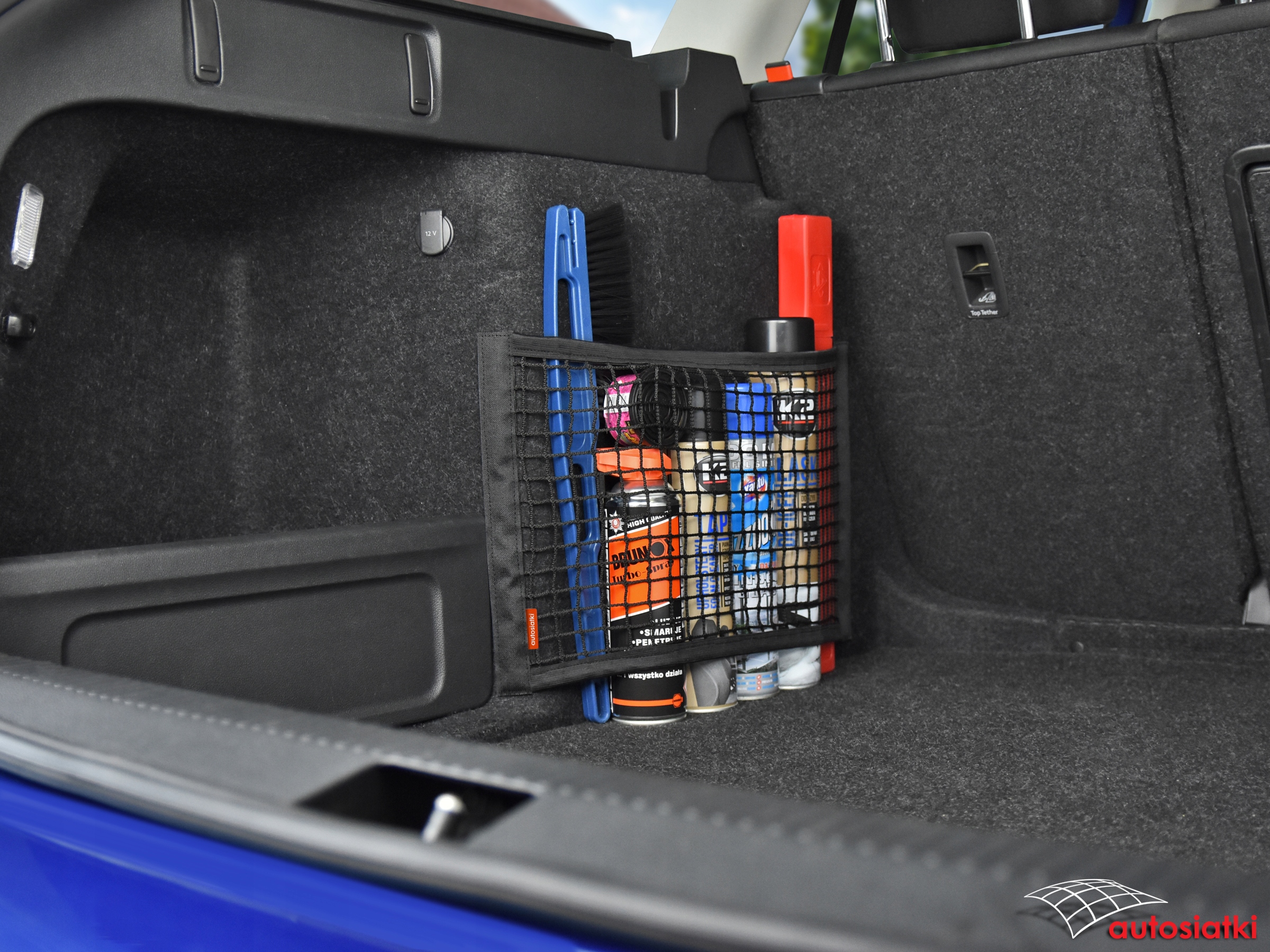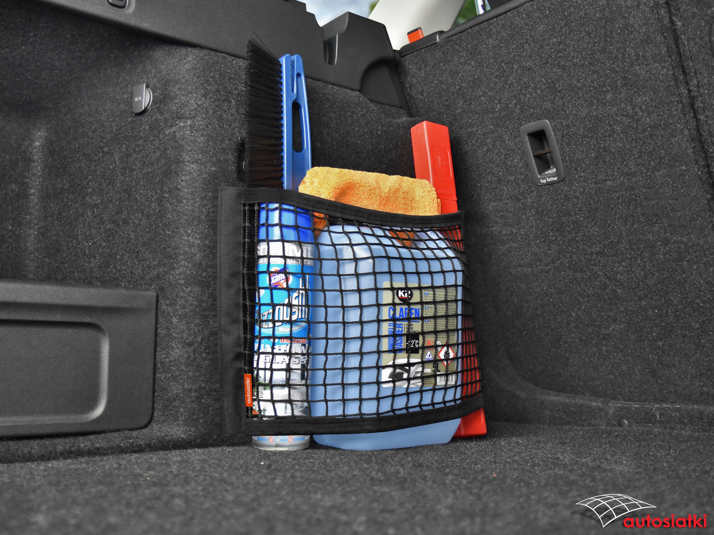 Это прочная сетка с лентой-липучкой по бокам. Отделка гибкой резиной сверху и снизу, что позволяет подогнать сетку под транспортируемые предметы. Забор крепится к ковру в багажнике или салоне автомобиля.