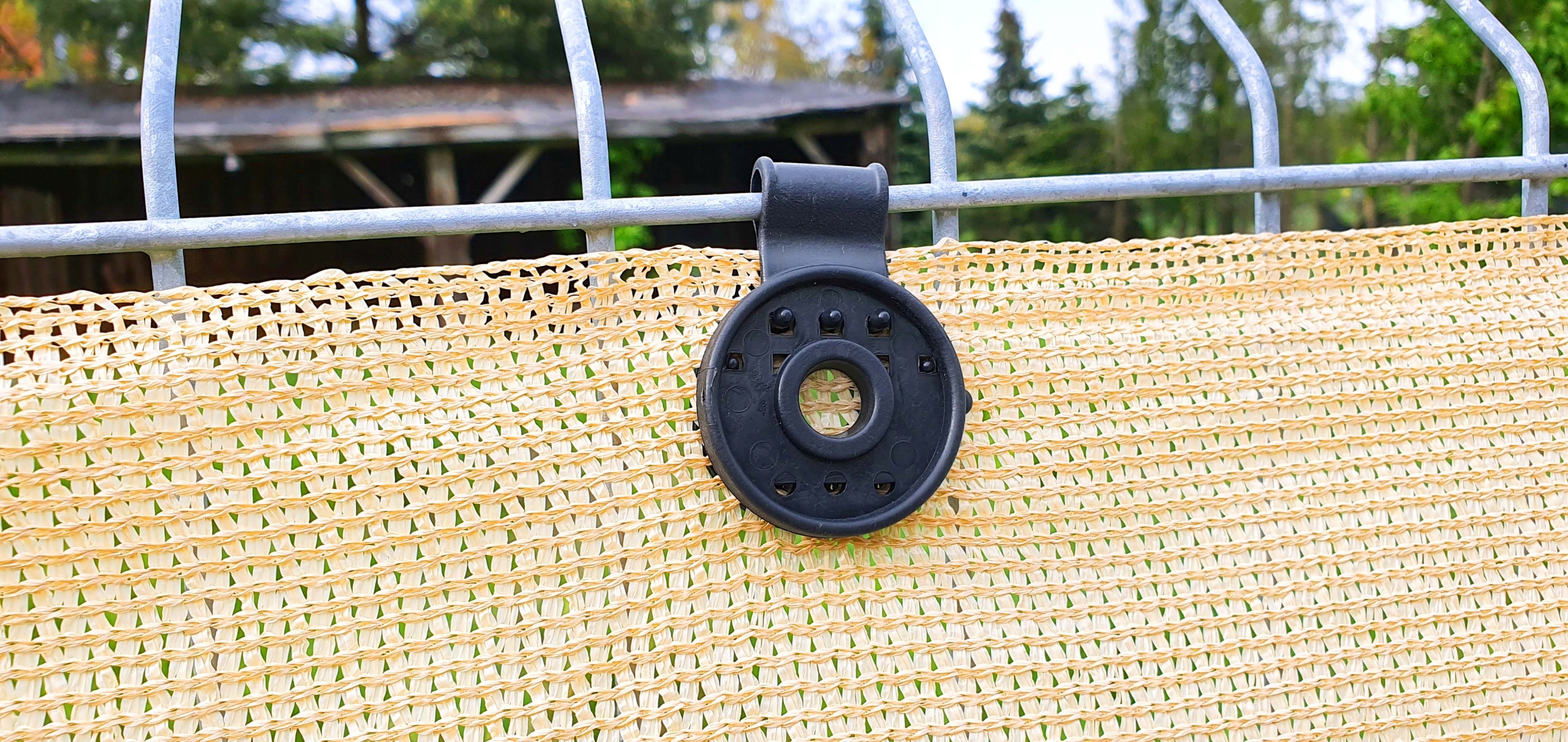 Мы рекомендуем устанавливать с помощью зажимов для крепления затеняющих сеток.