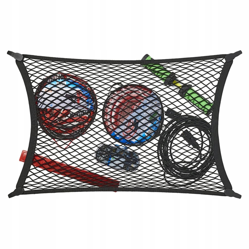 Сетка предназначена для багажников многих типов: от компактных городских автомобилей до больших внедорожников. Он изготовлен из гибкого, но прочного материала, устойчивого к растяжениям и механическим повреждениям. Переплетенные люверсы эффективно фиксируют как маленькие, так и крупные предметы, независимо от их формы и веса.