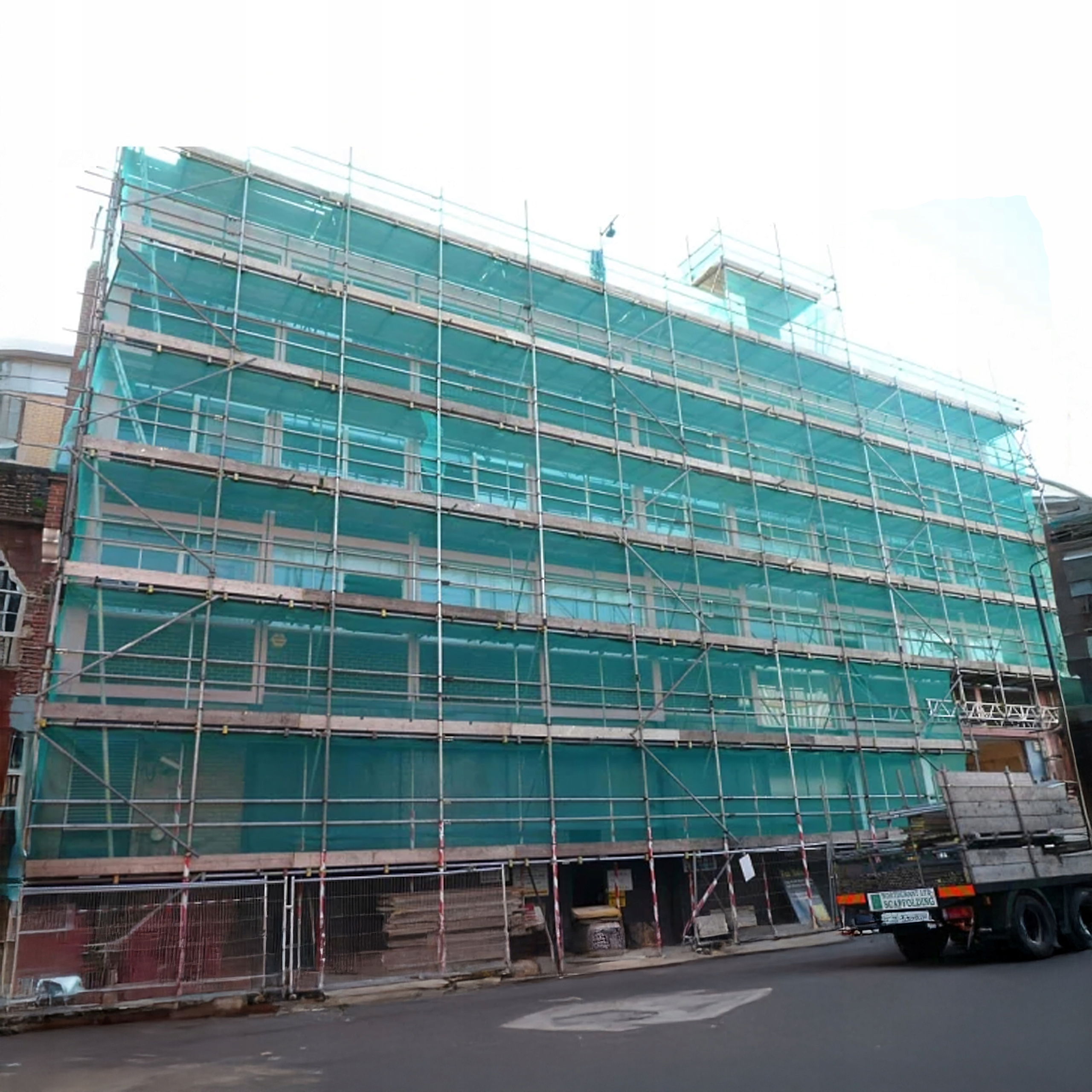 Защитная сетка идеально подходит для закрепления строительных лесов на строительной площадке, защиты от падений, пыли и обеспечения конфиденциальности.