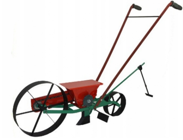 Очень прост в установке и использовании, легко собирается. и раскладывается для удобства хранения. Сеялка направляется металлическими колпаками с пластиковыми ручками.
