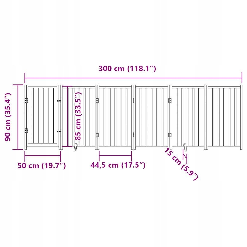 Składana bramka dla psa, z drzwiami, 6 paneli, brązowa, 300 cm