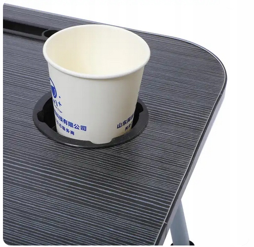 ✅ В таблице углубление для чашки, бутылки или термоса. Благодаря этому мы избежим проливания напитка. В столе также имеется углубление, в которое можно положить телефон или планшет. Вы также можете перетащить туда зарядное устройство и одновременно заряжать эти устройства.