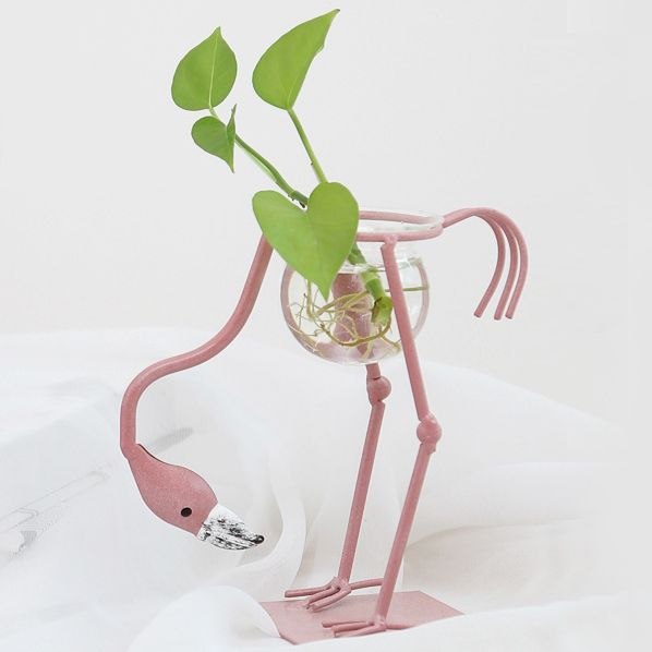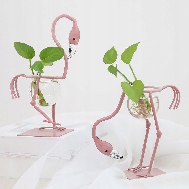 Ваза красивой формы фламинго был сделан из металла. Ваза предназначена для любителей оригинальных и оригинальных аксессуаров. Стеклянная ваза идеально подходит для хранения срезанных цветов и трав.