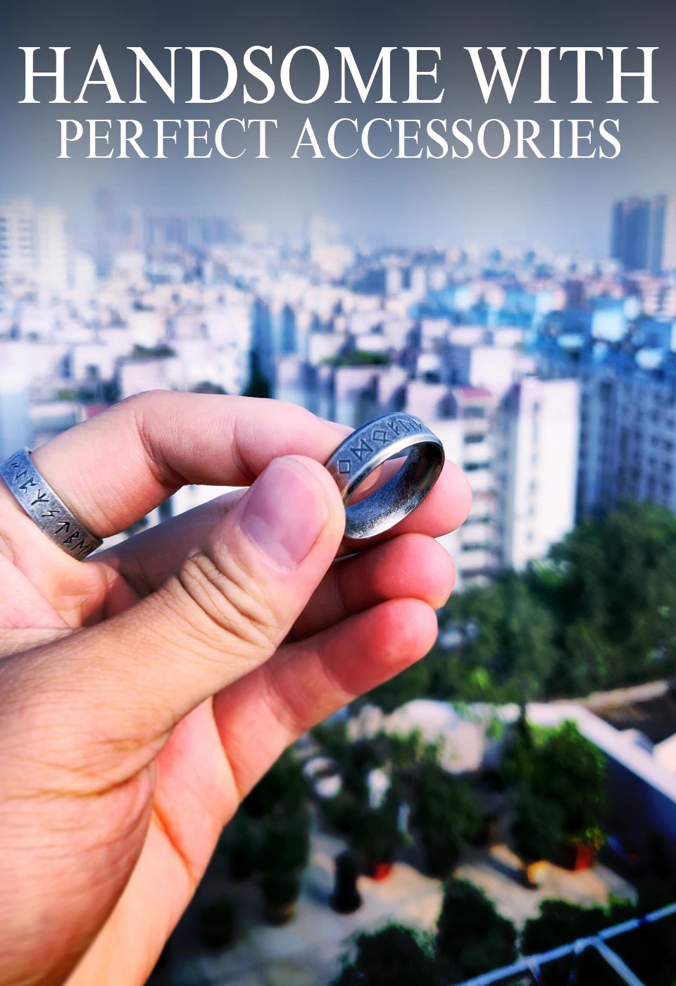 Скандинавська обручка з рунами вікінгів, печатка 6 мм r17