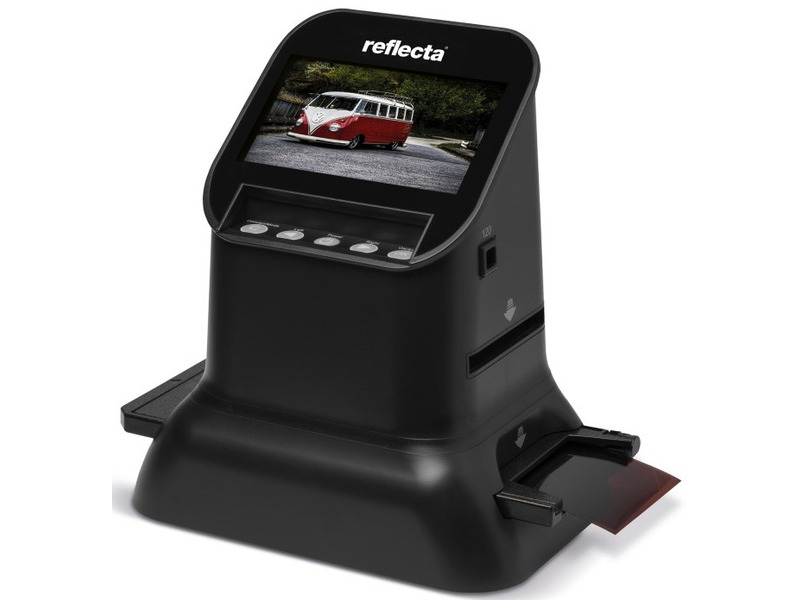 Сканер негативов Reflecta оснащен высокопроизводительным CMOS-датчиком изображения с разрешением 14 миллионов пикселей, позволяющим сканировать 120 негативов размером от 6x4,5 см до 6x9 см, а также 135 и 127 негативы (4х4см). Также возможно сканировать слайды в рамках 5х5 см. Сканер предлагает возможность управления изображением на IPS LCD-дисплее диагональю 10,9 см (4,3") и сохраняет отсканированные файлы в формате JPEG на картах памяти максимальной емкостью 128 ГБ. Благодаря этому устройство полностью независимость от компьютеров.Дополнительно через порт HDMI можно вывести изображение, видимое на дисплее, на экран телевизора.Вместе со сканером производитель предоставляет слайдодержатель в рамках 5х5 толщиной до 3,2 мм, а также держатель на 135, 120 негативов в полосе, содержащей до 6 кадров. Держатели обеспечивают оптимальное расположение сканируемых материалов и в то же время гарантируют защиту негативов.