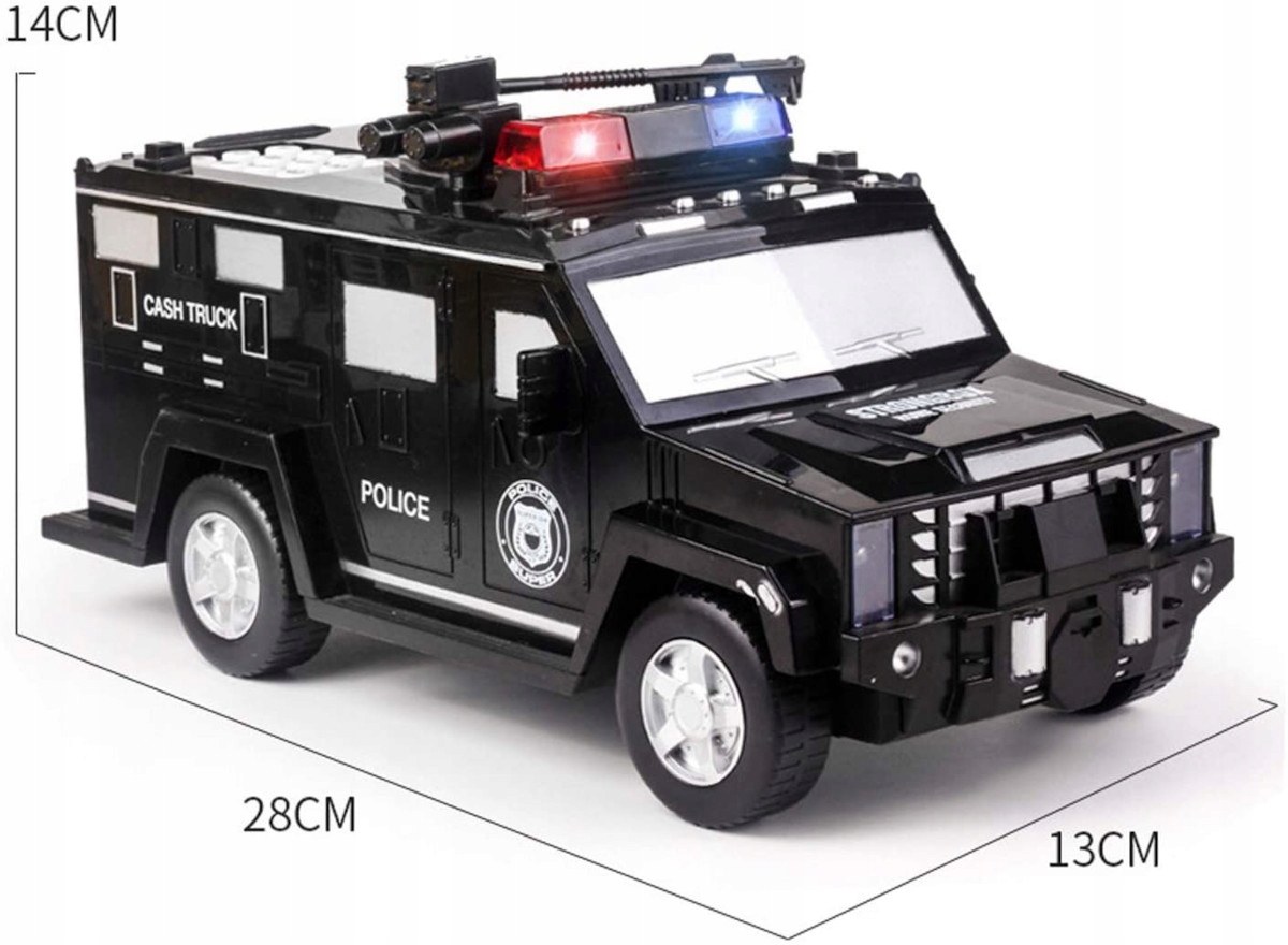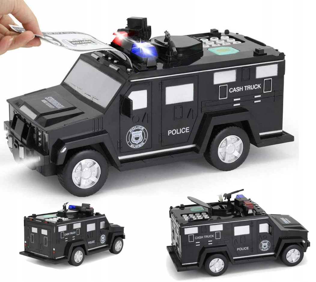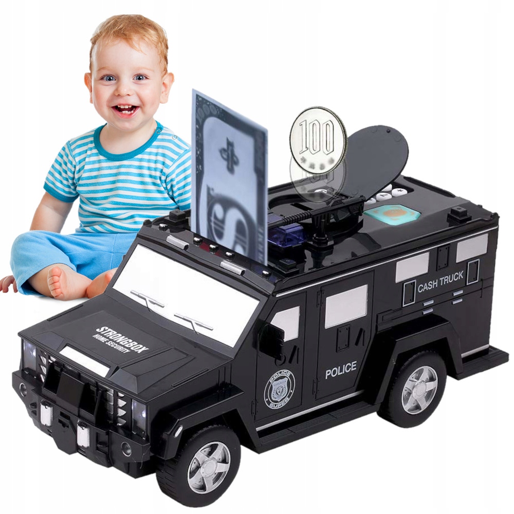 Представляем вам копилку в виде полицейской машины с электронным кодом! Благодаря этому ваш ребенок научится экономить и планировать расходы. Копилка автоматически принимает бумажные деньги и монеты. Просто приложите банкноту к прорези, и сейф автоматически заберет деньги! Также имеется защита от вскрытия в виде булавки и имитация считывателя отпечатков пальцев.