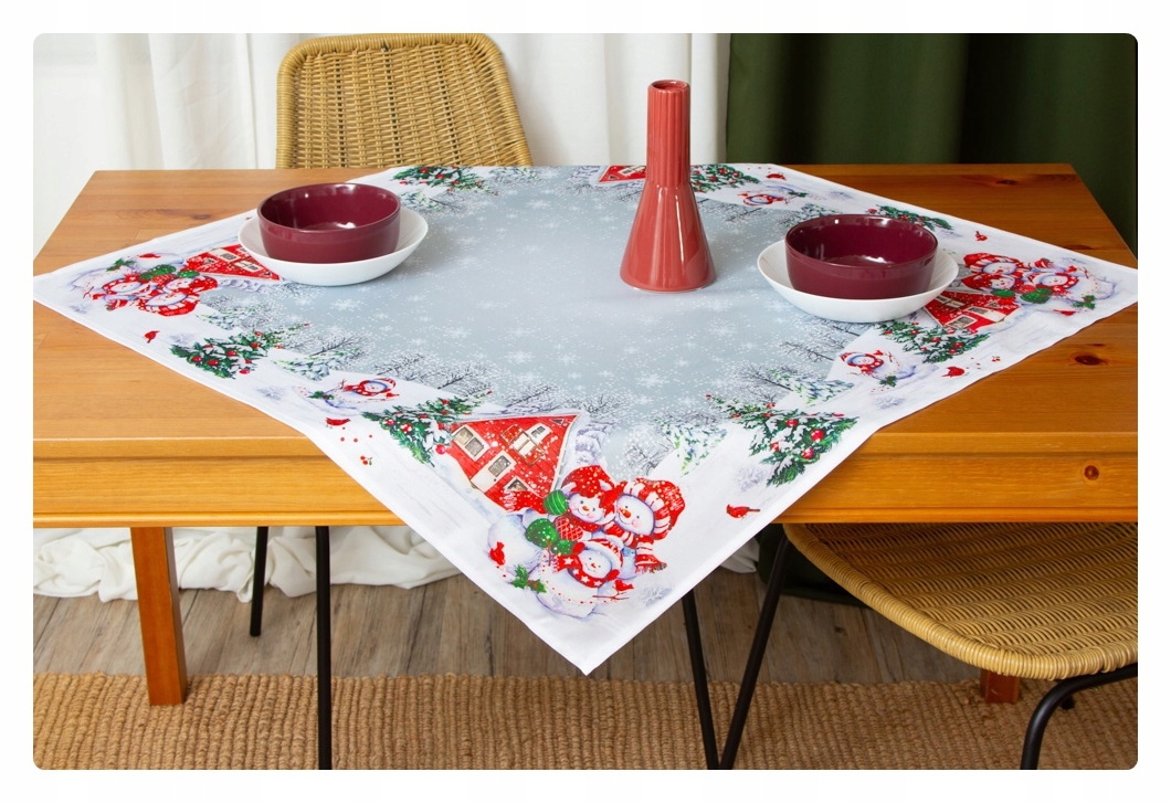 Скатерть на Рождество, Дед Мороз, РОЖДЕСТВЕНСКИЕ ДЕРЕВКИ, зима, 140х250, грязеотталкивающая