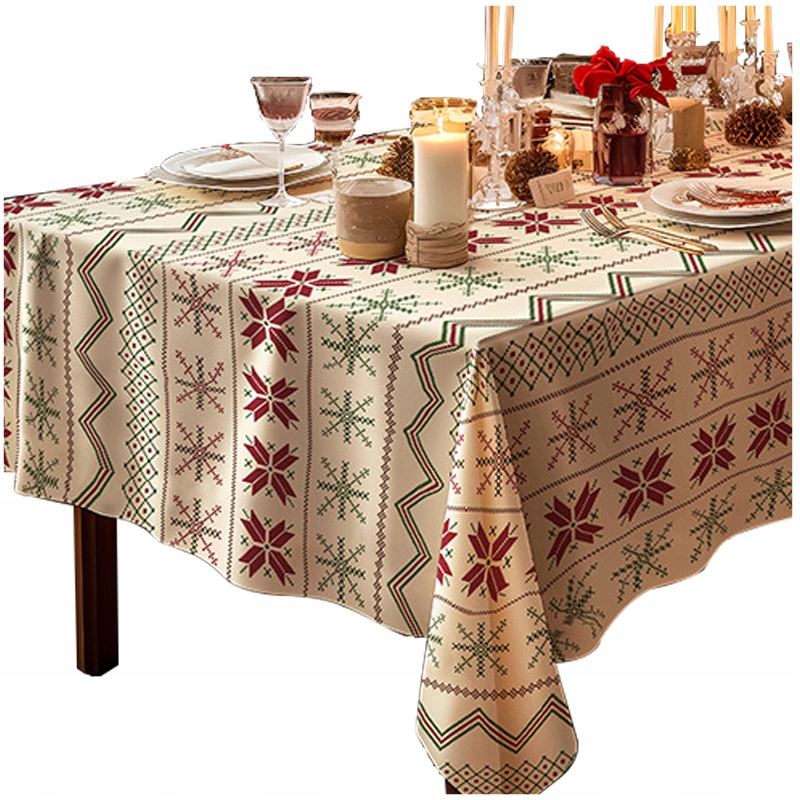 ☛Рождественская скатерть бежевая, прямоугольная 140х240 см☚