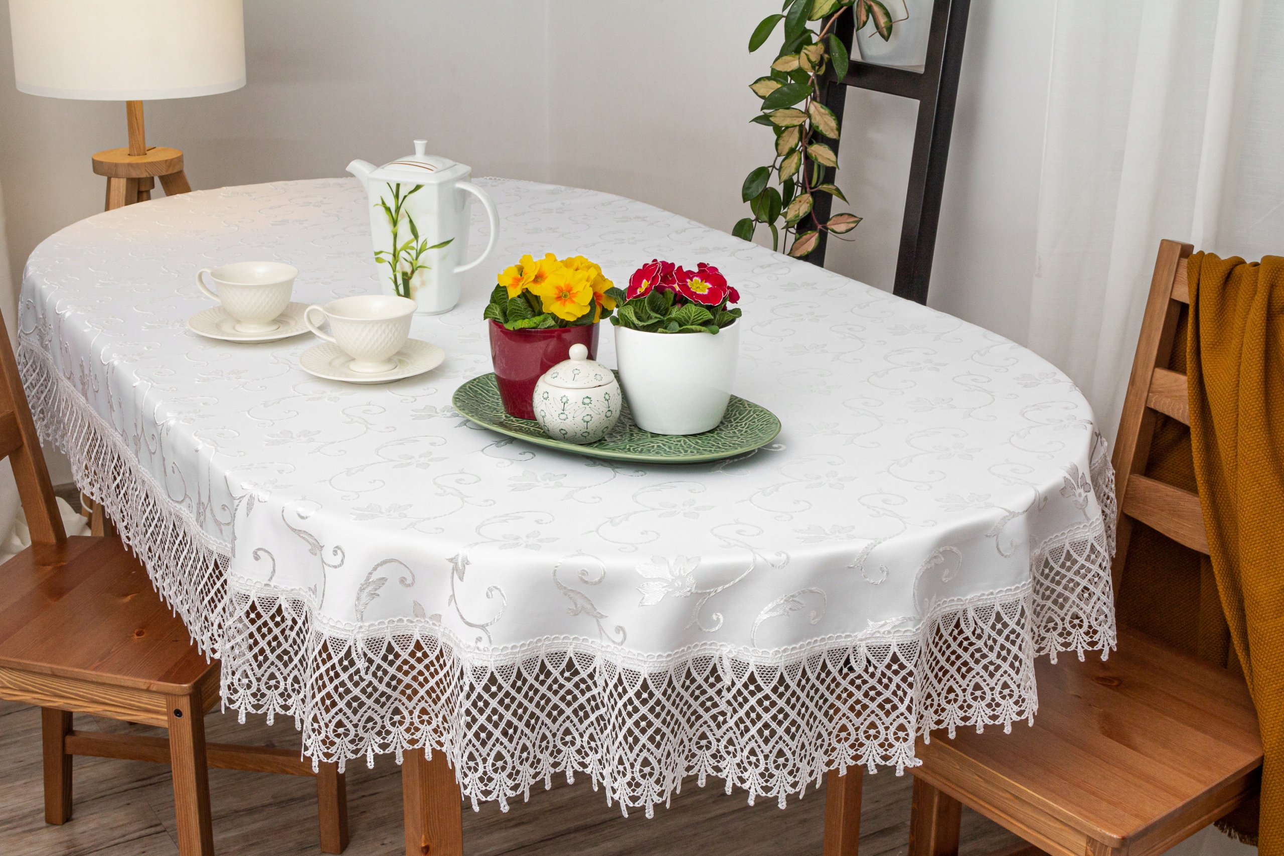 Скатерти гипюровые грязеотталкивающие 140х240 овал