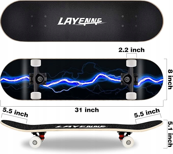 Скейтборд Layenne был разработан специально для детей, подростков и взрослых, которые любят скейтбординг. Использование скейтборда может тренировать баланс. Это идеальная модель для начала - легко водить, сплошной и безопасной. Это поможет в изучении первых хитростей, и в то же время будет работать во время обычного вождения по городу или парку.