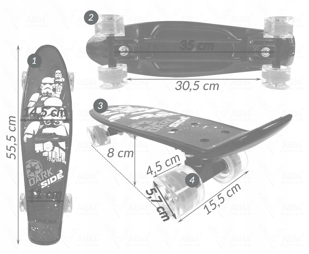 - 55,5 см - общая длина скейта.