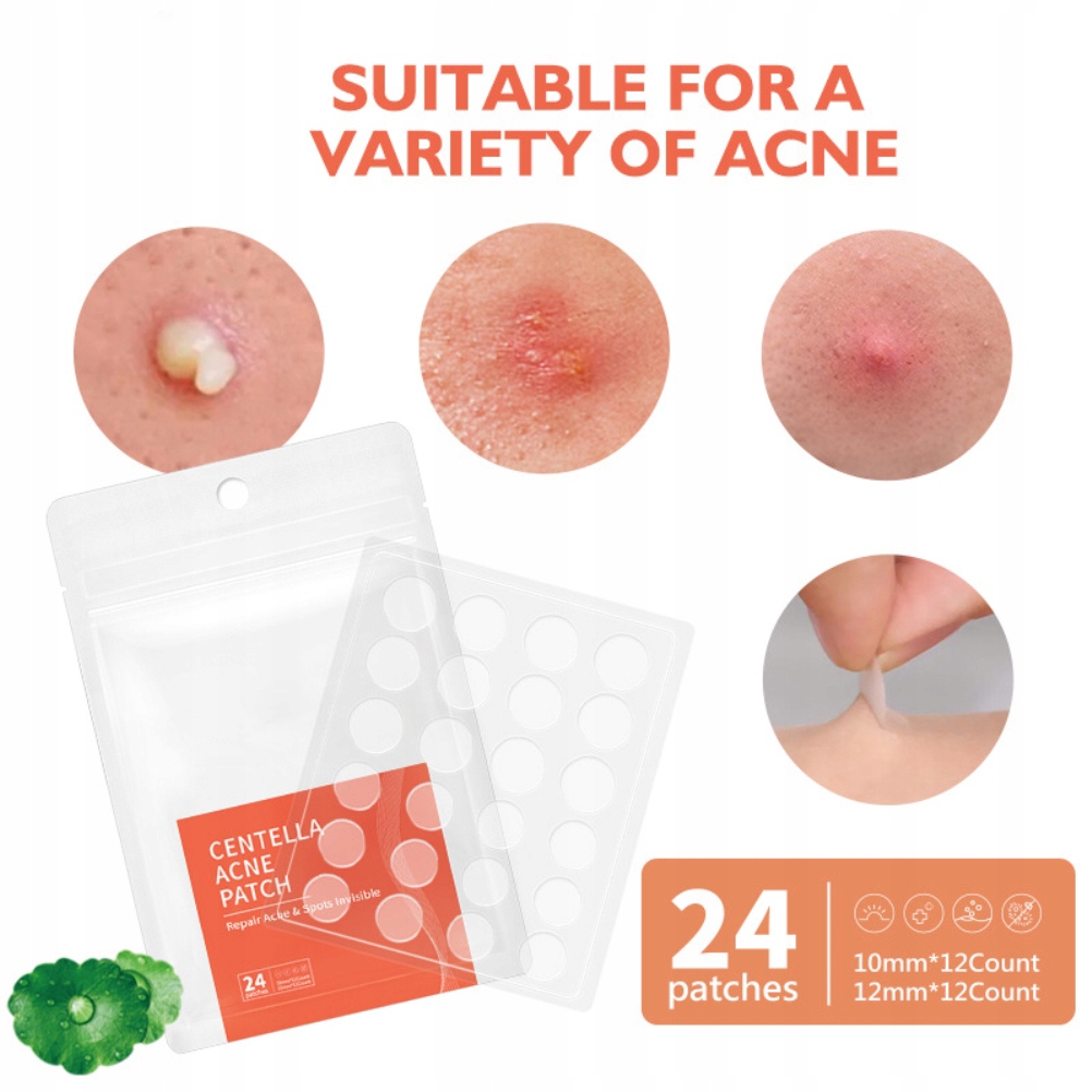 Упаковка содержит 24 наклеек, разделенные на два размера 12 мм и 10 мм, для ежедневного использования и при ежедневном использовании: гидроколлоидный