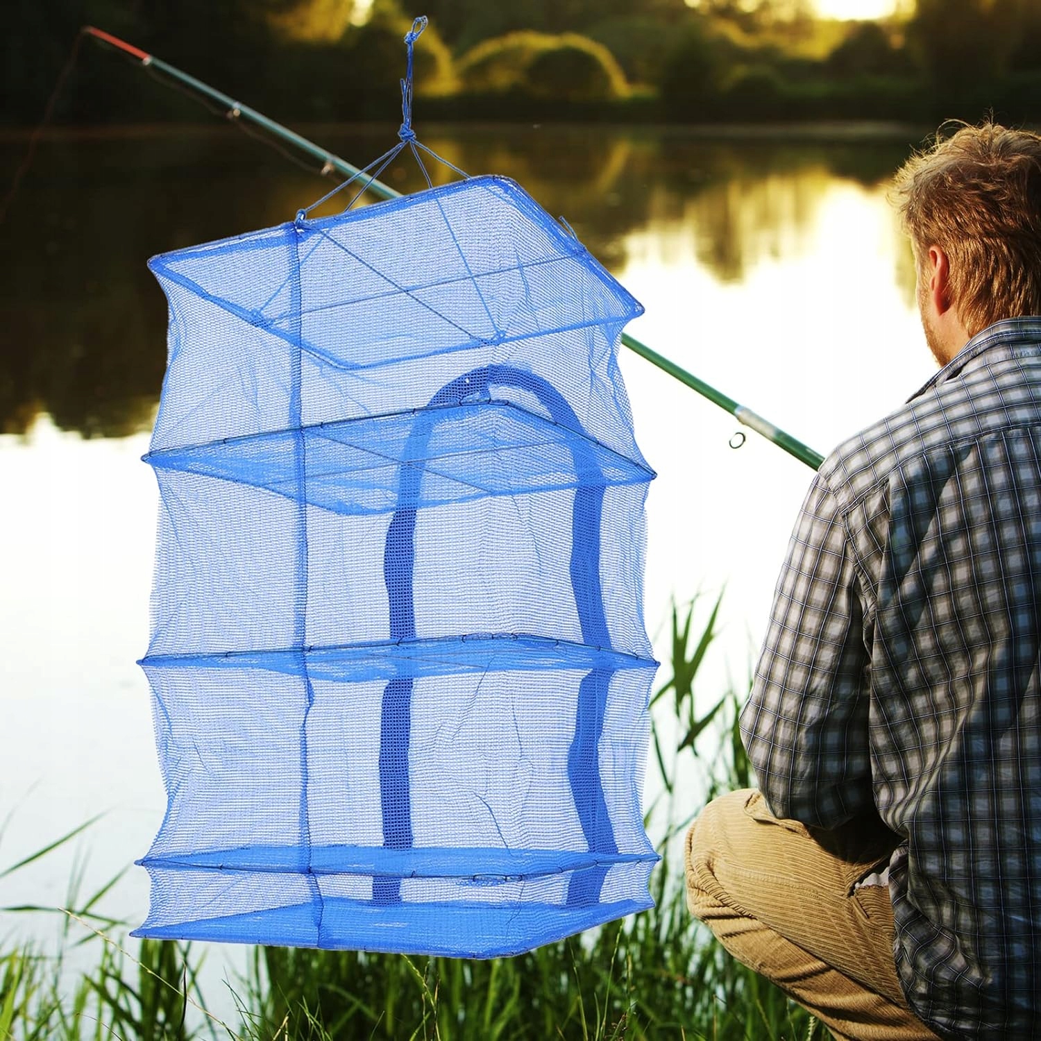 Складная сушная сетка, висящая с 3-слойной рыбой на молнии