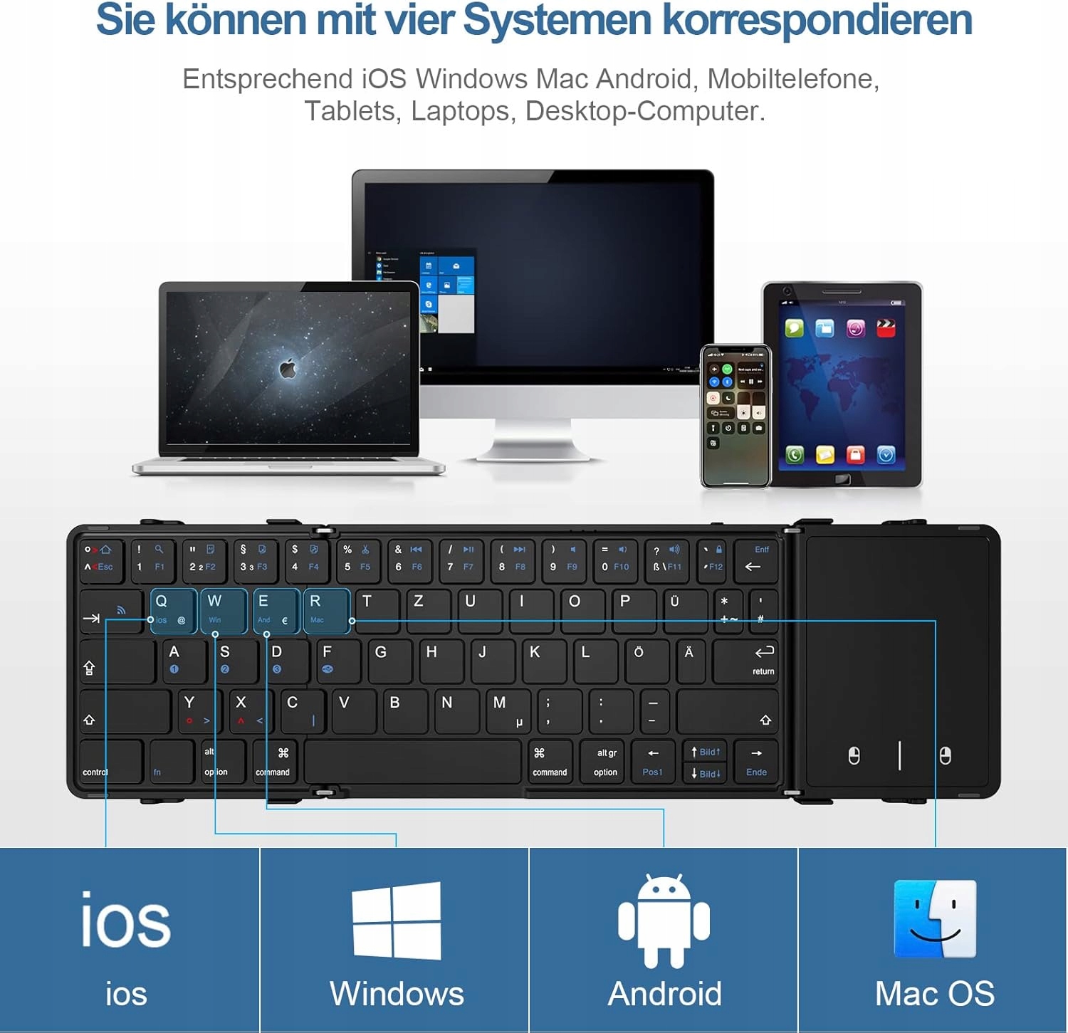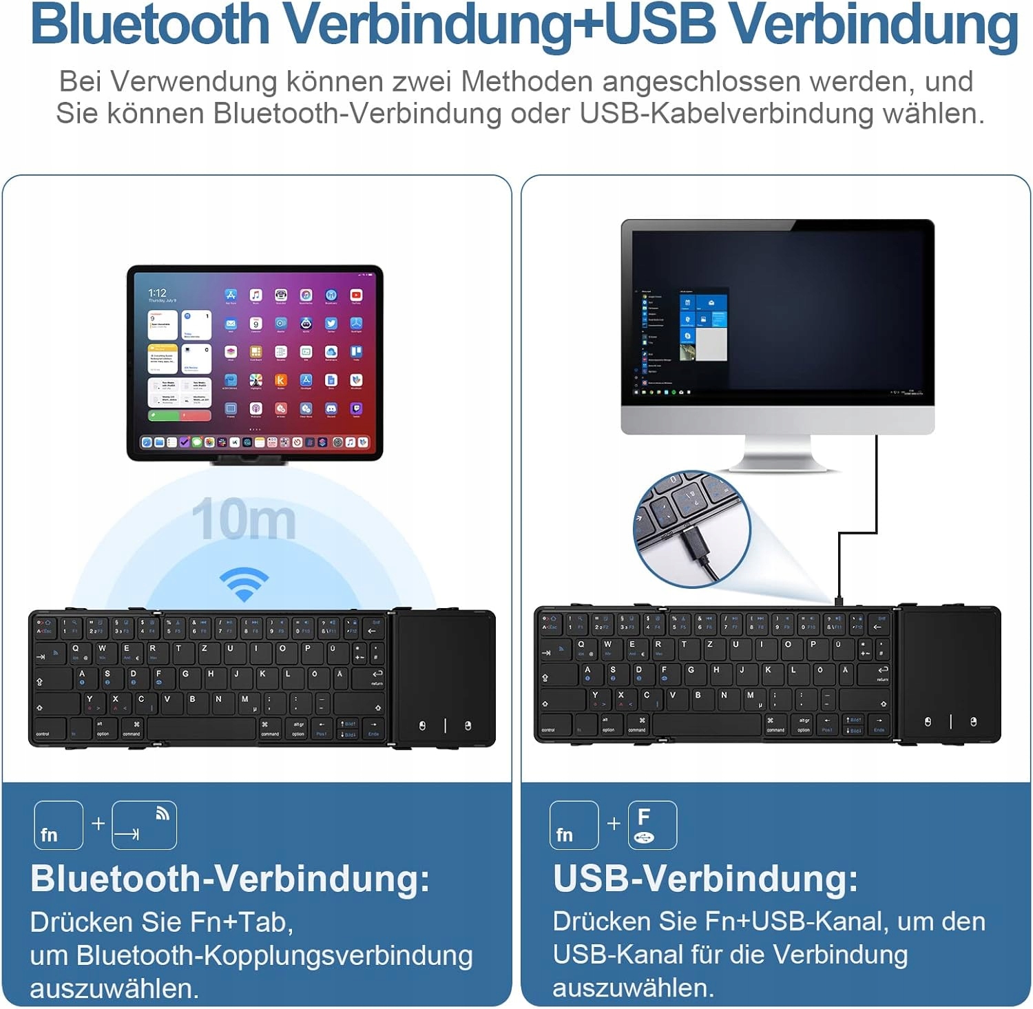 - 【【 Bluetooth 5.1 и чувствительная сенсорная панель】 складывает клавиатуру Bluetooth использует единственную технологию Bluetooth 5.1 и оснащена новой, очень чувствительной сенсорной сенсорной панелью. Расстояние передачи до 10 м обеспечивает лучший опыт от клавиатуры.