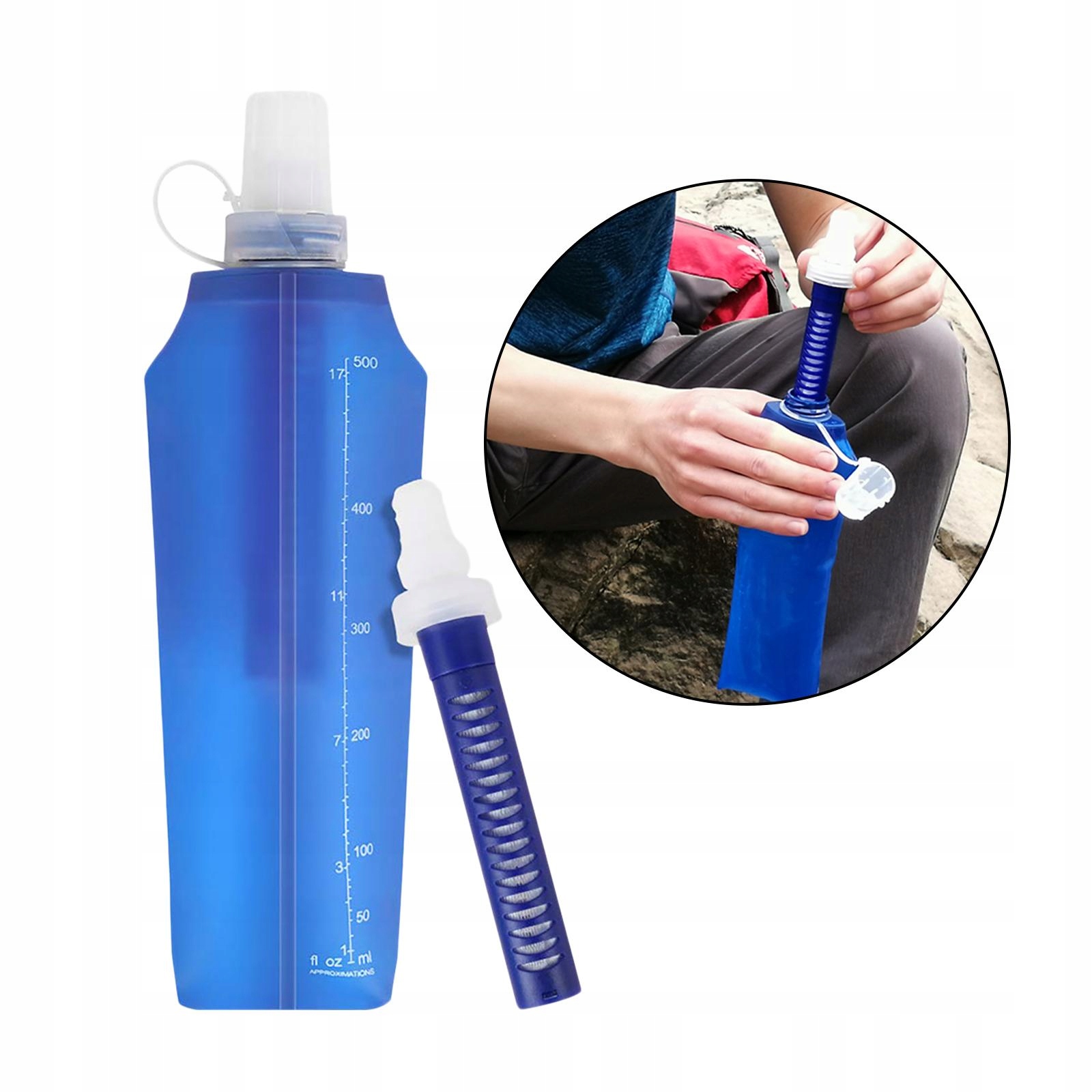 Складывая бутылка с водой с фильтром, без BPA, со встроенным 2-градусным фильтром