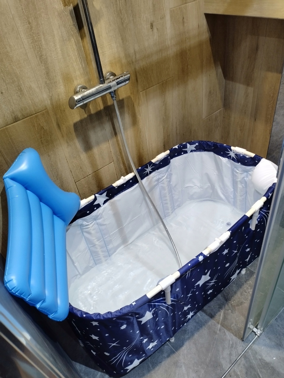 Многофункциональная складная ванна xxl (звезды/ луна, синий) - 6 -слойная изоляция, нагрузка 120 кг, складывается до 8 см, идеально подходит для небольших ванных комнат и SPA в домашних условиях.