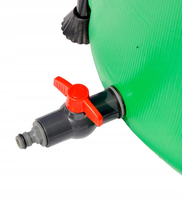 Резервуар для воды Bass Polska позволяет собирать из желоба 250 литров дождевой воды. Собранную воду можно отобрать двумя способами. Просто откройте молнию, чтобы набрать воду сверху. Также можно открутить кран с подключенным шлангом или обычным садовым шлангом.