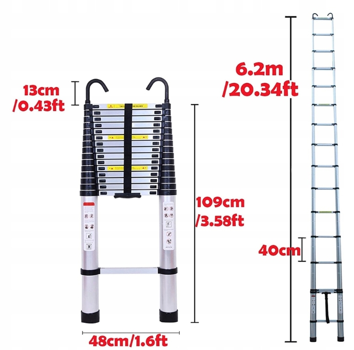 ✔ 3. Многофункциональный: Полная длина 6,2 м позволяет пользователям достигать высоких мест, это может быть чердачная лестница, домашняя лестница, офисная лестница. Идеально подходит для домашних заданий и на открытом воздухе, таких как ремонт потолочных ламп, подвесные рамки для картин или стены покраски, мыть окна, замена лампочек, работы в саду, доступ к чердаке и многим другим.