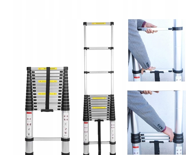 ✔ он характеризуется прочной алюминиевой конструкцией, промышленными защелками блокируют высоту и твердые не -сластичные резиновые ножки на дне лестницы. Телескопическая лестница одобрена стандартом безопасности EN131.