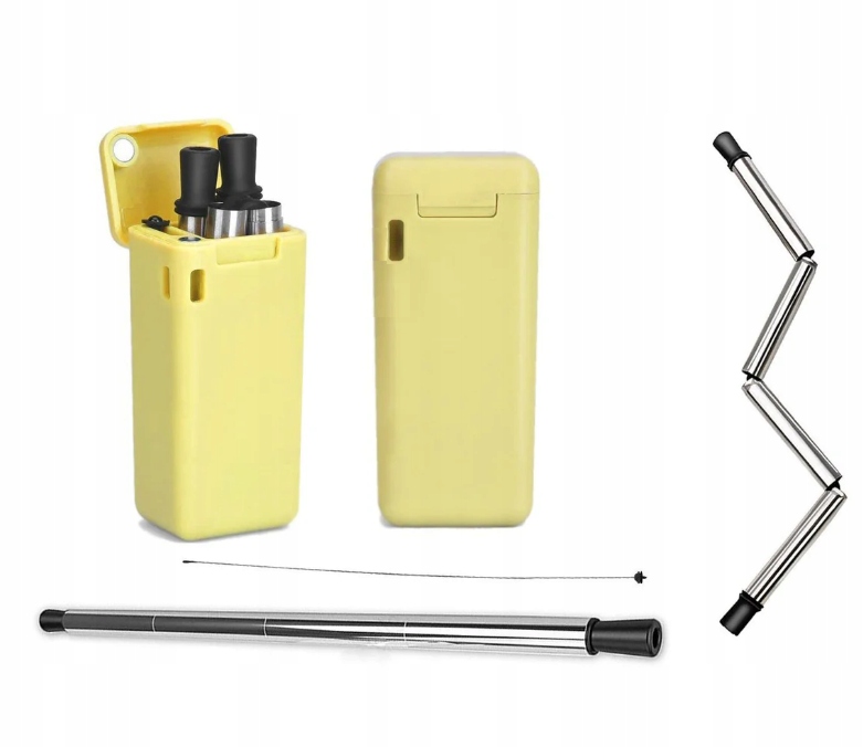 СКЛАДНАЯ МЕТАЛЛИЧЕСКАЯ МНОГОРАЗОВАЯ СОЛОМКА, ЖЕЛТАЯ, ЭКОЛОГИЧЕСКАЯ, КОМФОРТНАЯ