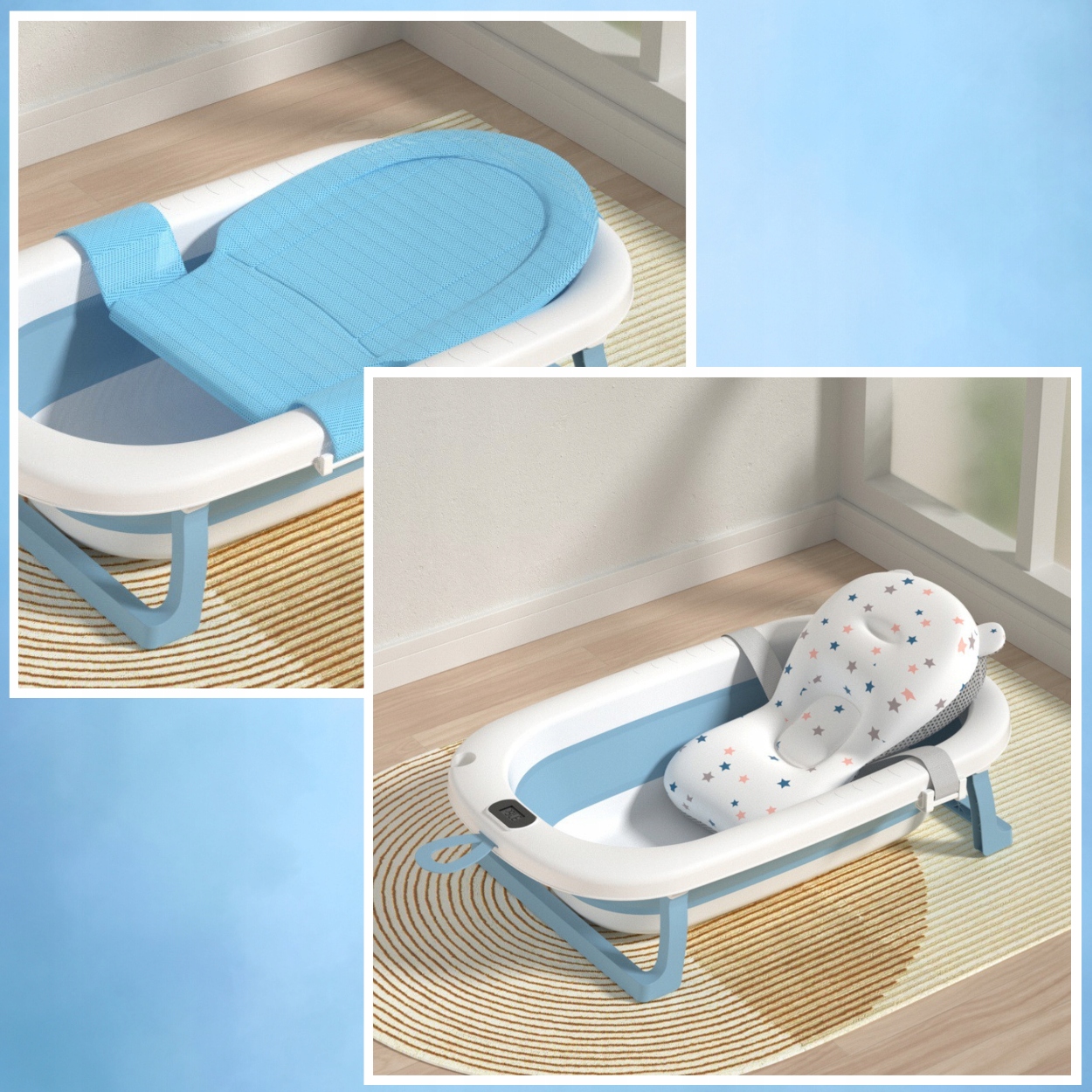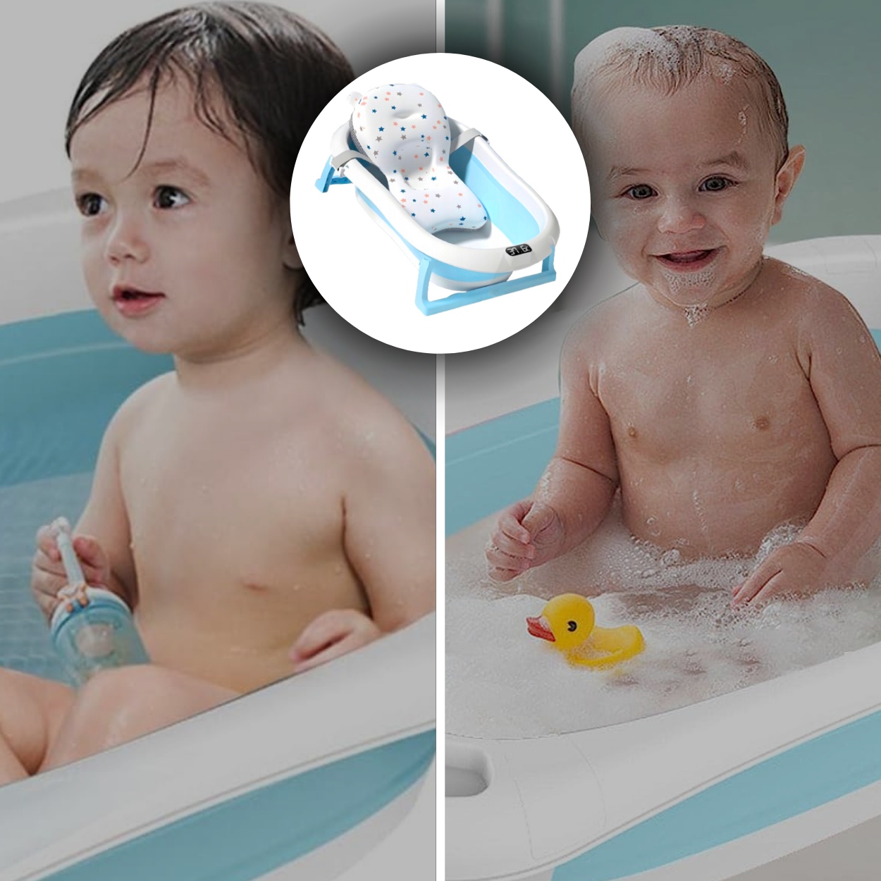 СКЛАДНАЯ СИЛИКОНОВАЯ ДЕТСКАЯ ВАННОЧКА С ЖК-ТЕРМОМЕТРОМ + ПОДУШКА НА ПОДГОЛОВНИК ДЛЯ ВАННЫ